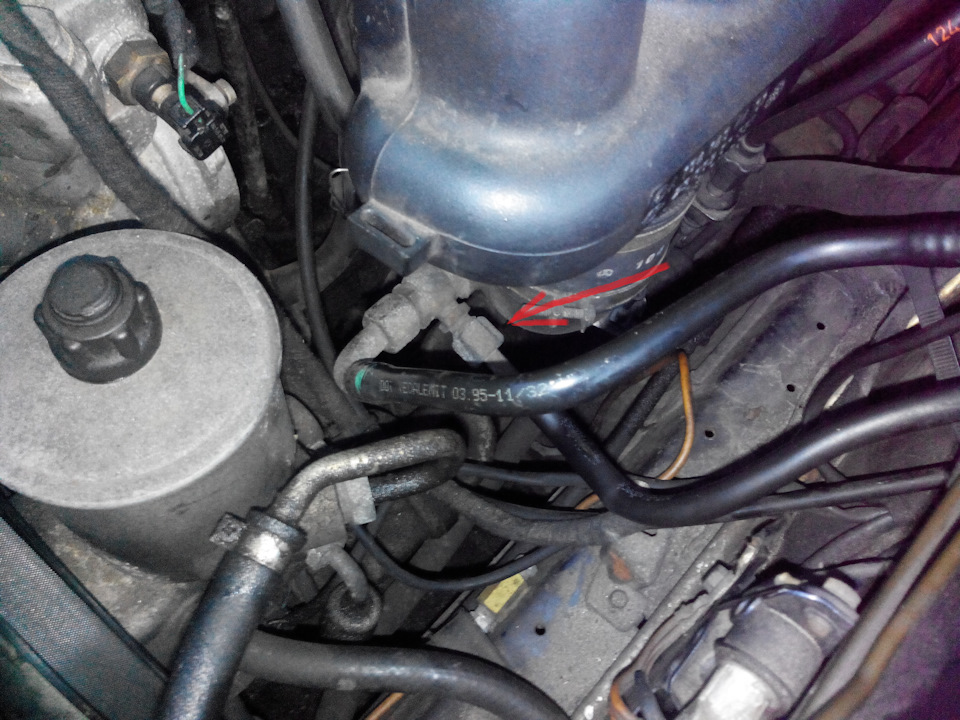 Трубка выходит вместе с топливными трубками из под пластиковой крышки на голове. Потом через это клапан трубка заходит в дроссель.