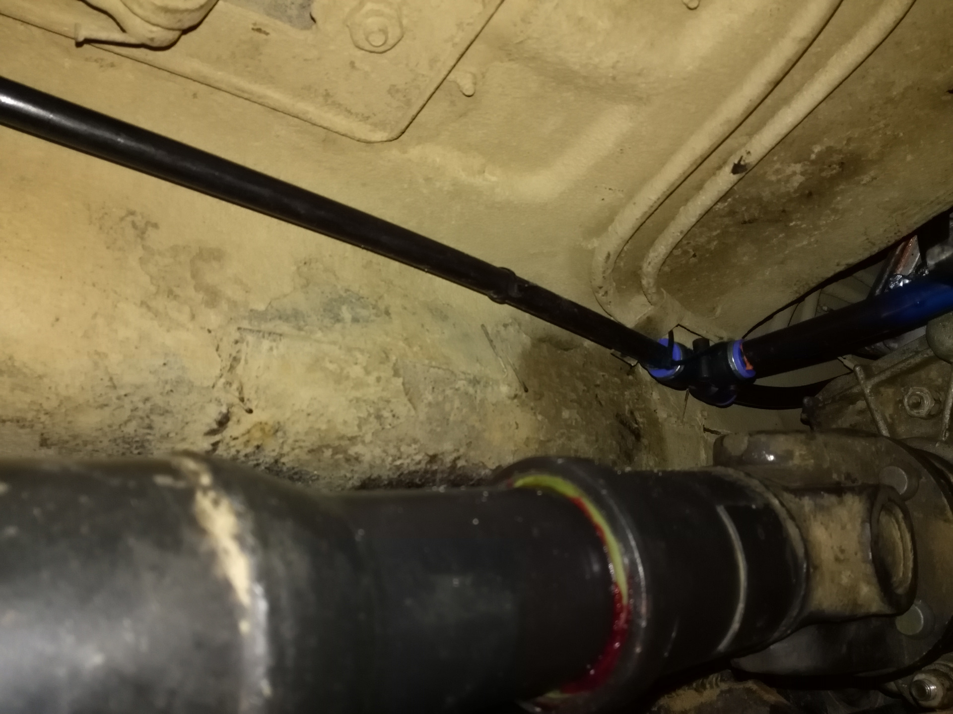 от заднего моста протянул общую магистраль до подкапотного пространства и с помощью тройников сделал отводы на раздатку, коробку и мосты.