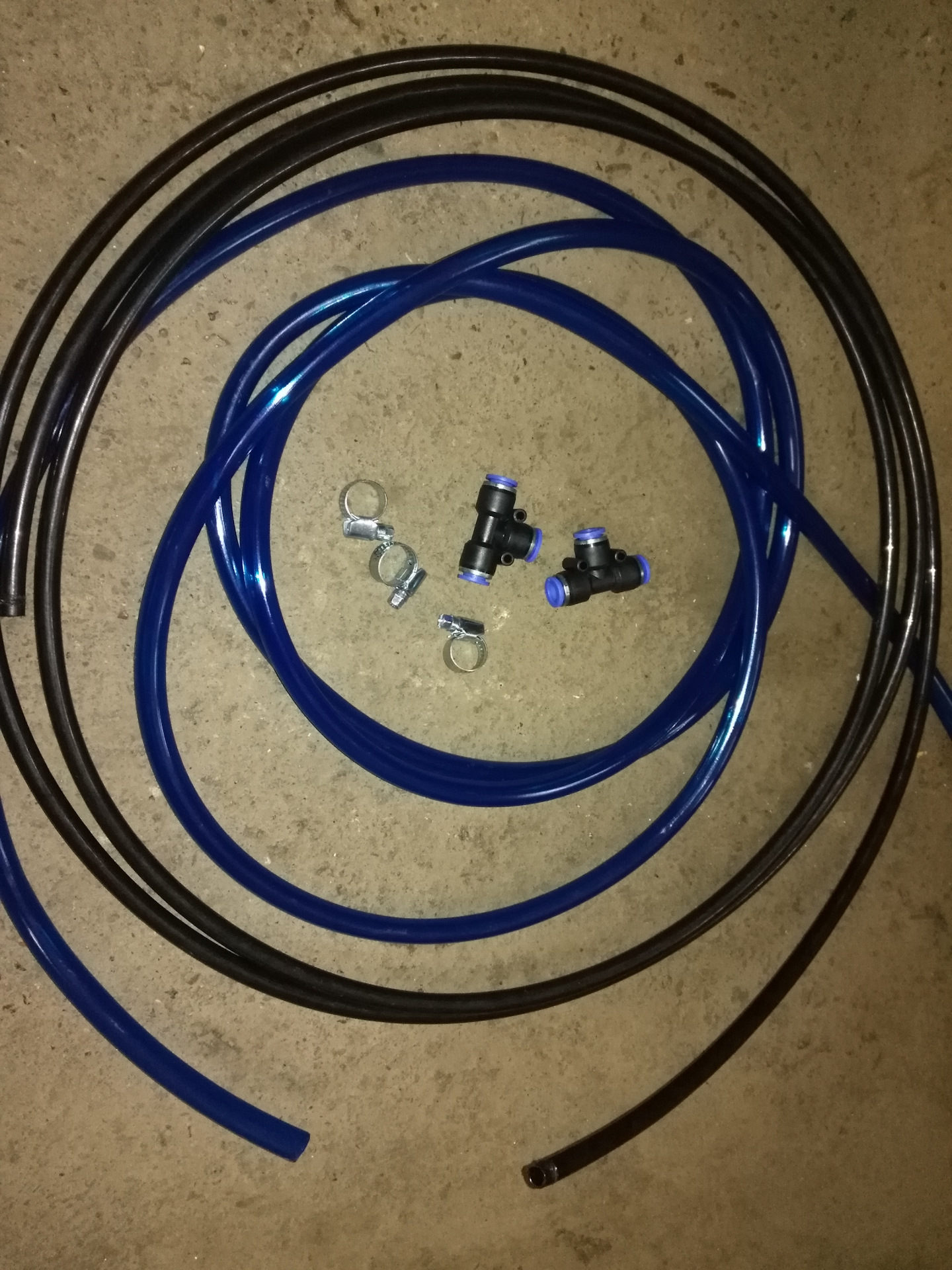 понадобится шланг пневмосистемы грузового авто 12 рублей метр, бюджетно и надежно, там же взял несколько тройников для него и топливный шланг