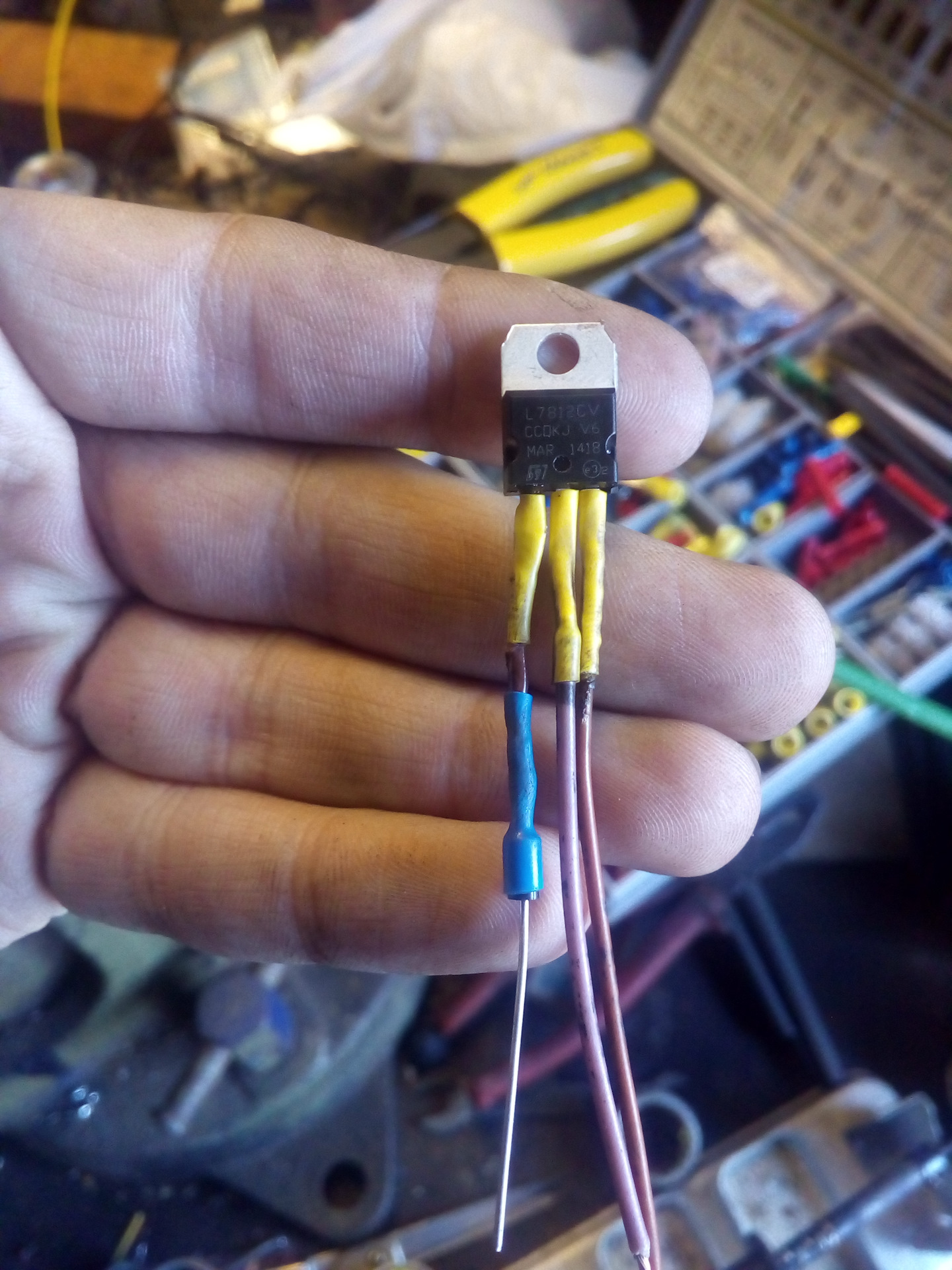 Многие замечали что после покупки светодиодов через какое то продолжительное время езды начинают моргать светодиоды или попросту сдыхают, это обусловлено тем что в наших машинах бортовая сеть от 13,7 вольт и выше это напряжение ненравится нашим красивым диодом что же делать спросите вы ведь на желтых габаритах стремно ездить, а мне еще и надоело их менять каждые пол года на разных моих автомобилях, после просмотра разных статей берется простая микросхемка спаивается и врезается в цепь ! Алилуя господа пользуемся радуемся наслаждаемся, после врезки в цепь я произвел некоторые замеры до установки крен8б напряжение было 12,7 что грозит сразу смерти диодам, после подцепки кренки выравнилось до 10,4 что гарантирует долгую и качественую службы наших светодиодов. Так же заказал себе ДХО с ebay будем ждать