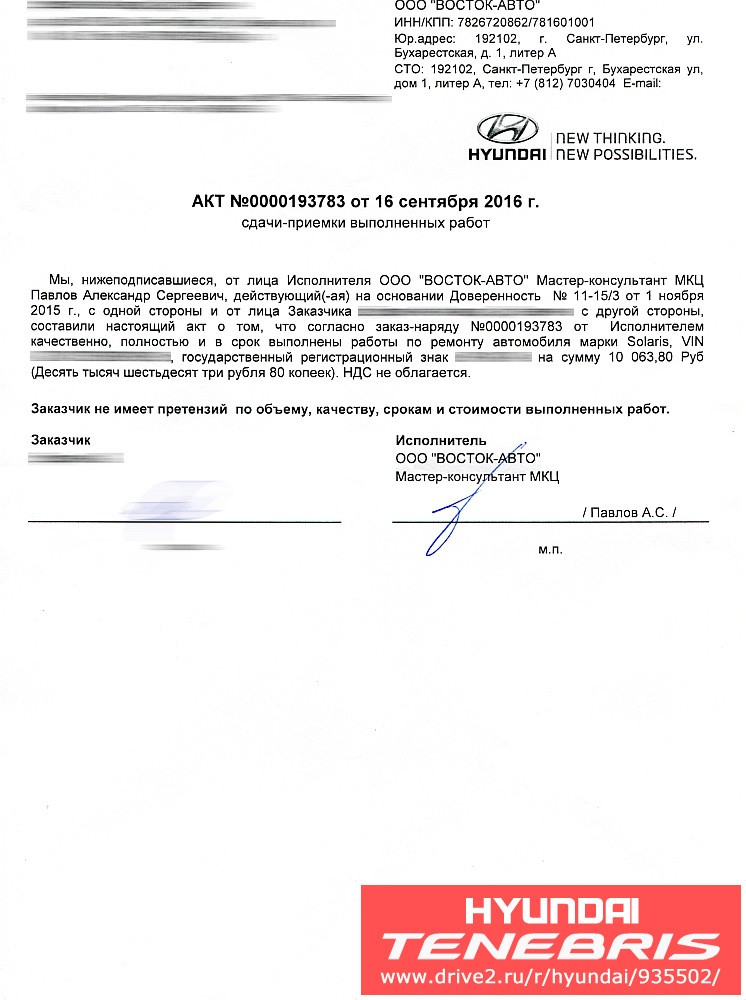 Прикинув стоимость работ при самостоятельной замене и перекраске, решил не останавливаться и позвонил на горячую линию Хёндэ в службу клиентской поддержки (телефон 8 800 333-71-67). Сказал им четко и прямо, что если они мне в таких случаях отказывают в гарантии, то зачем мне вообще ездить ежегодно к ним на ТО, всё равно от них нет никакого толку, а на любой постгарантийной СТО я могу обслуживаться в 3 раза дешевле и 3 раза качественнее. Видимо, такого рода высказывания оператора впечатлили и девушка обещалась передать мою претензию на повторное рассмотрение случая в гарантийный отдел ОД "Восток-Авто Жукова".