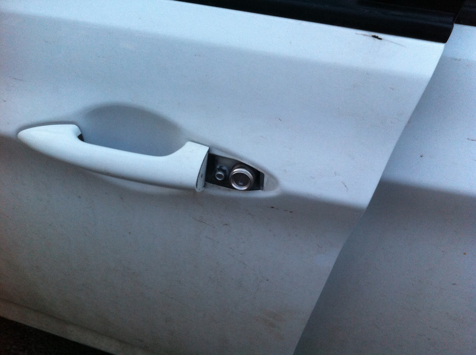 Ещё в начале лета стал замечать, что внешняя ручка левой пассажирской двери стала странно себя вести при открывание. Каждый раз при открытии появлялось ощущение, что она шатается и открывается на бОльший угол, чем должна. Через неделю ручка стала вполне явно раскладываться на составные части, стала видна резиновая подложка-уплотнитель, а значит пришло время действовать.
