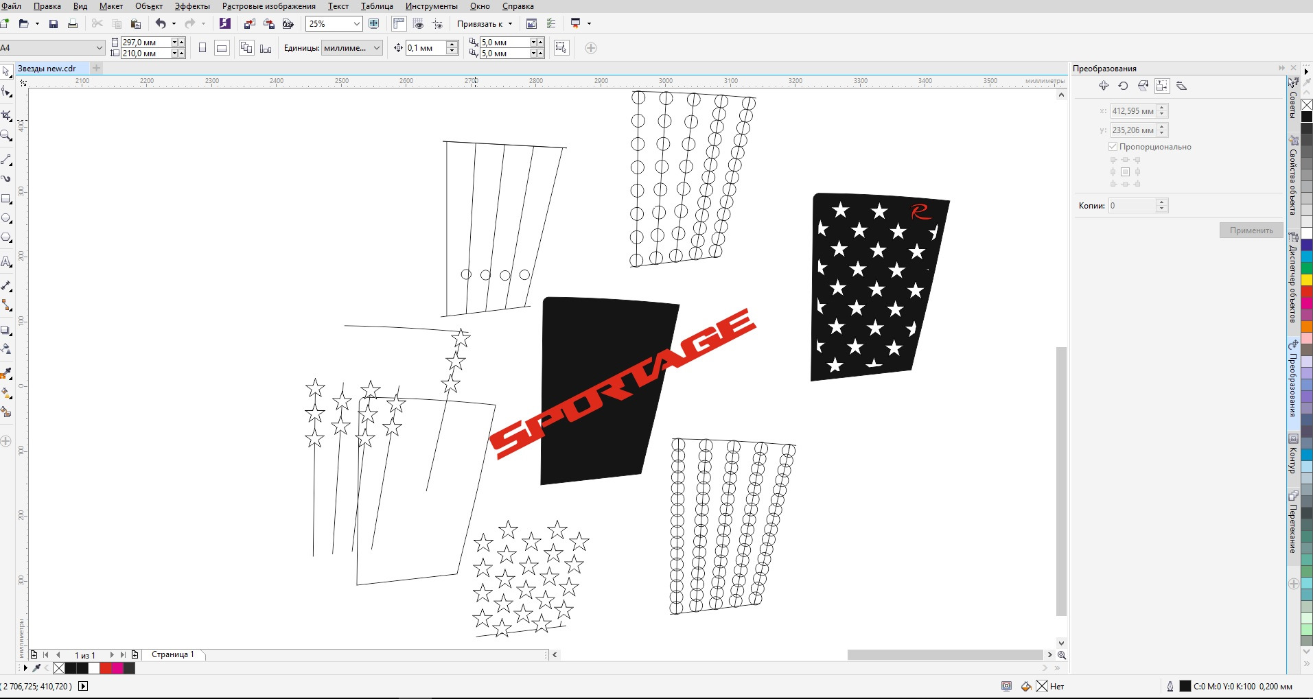 Потратил сегодня немного времени, переделал конур накладки и прикинул несколько вариантов на замену старых звезд.
