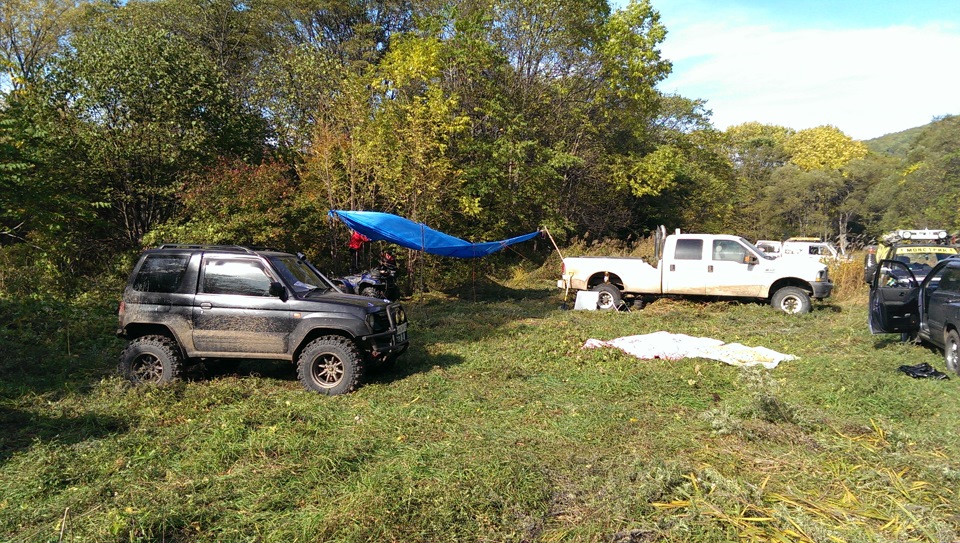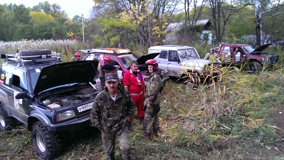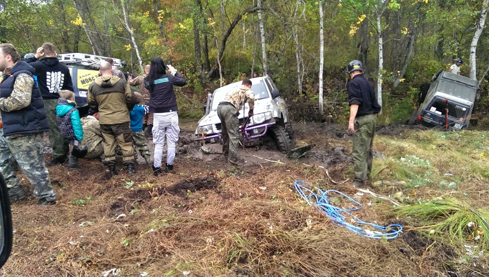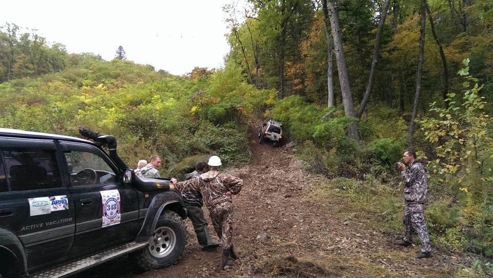 Еще один экипаж тоже смог подняться к заветной точке, но к следующей точке все как будто пропали. До конца соревнований мы так и не встретили никого из нашего класса. Сложилось впечатление, что все забили и поехали отдыхать на поляну. Как оказалось много машин порвались на этом подъеме и сошли с соревнований.