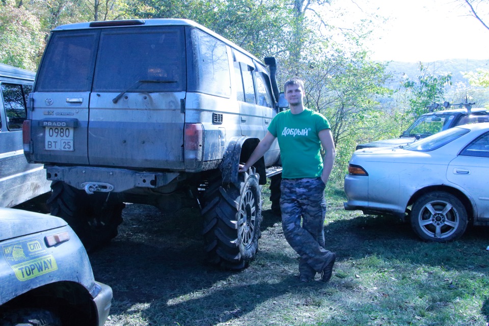 Один раз мы серьезно застряли в болоте, около часа вынимали машину. Деревьев рядом нет. Сначала рвали болотные кочки руками, потом пилой их распиливали на кубики, чтобы хоть немного освободить морду. В итоге, якорем послужил сендтрек, упертый в кочку. Немного приподняв машину, дальше помогли блокировки. Взяв все 6-ть точек возвращаемся в лагерь, но машина начинает троить и глохнуть :( Оказалась полная воды фишка датчика зажигания. Продув ее, мы двинулись в лагерь.