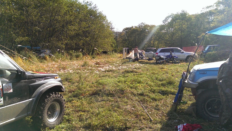 Участвовал впервые в подобном мероприятии, поэтому все было в новинку. Приехал в пятницу на регистрацию, заполнил анкету, заплатил взнос+страховка, получил наклейки спонсоров. Народ, кто остался ждать субботы у лагеря, разбил палатки на специальной для этого поляне.