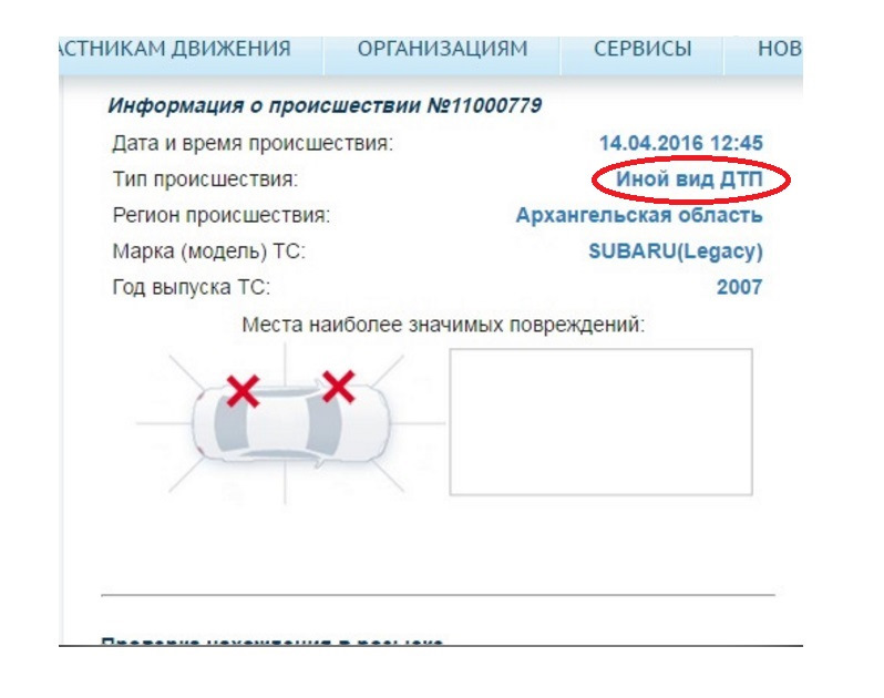 Кстати теперь на сайте ГИБДД www.gibdd.ru/check/auto/ при вводе моего VIN, у меня отображается "Иной вид ДТП"