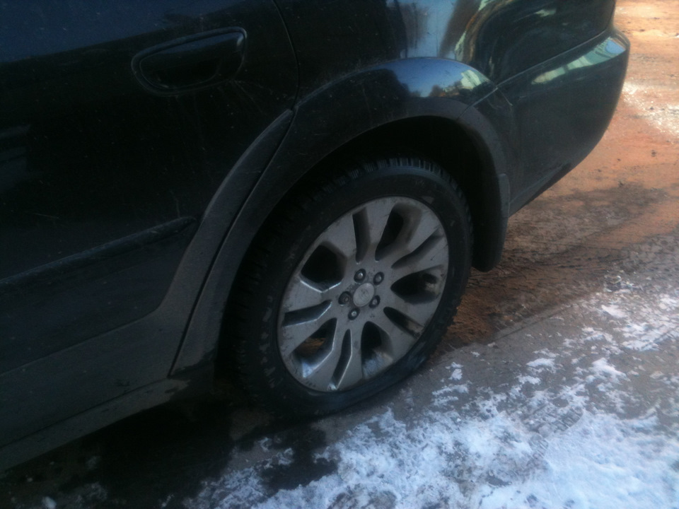 Когда гайцы уехали, для меня встал вопрос, а как уехать, — хорошо, что одно колесо я мог поменять (полноразмерная запаска), а с другим колесом, помог знакомый субарист (субобратство:-) и я в него верю)), — отдал свою девственную запаску, и вообщем пока была экспертиза две недели, я гонял на двух запасках.