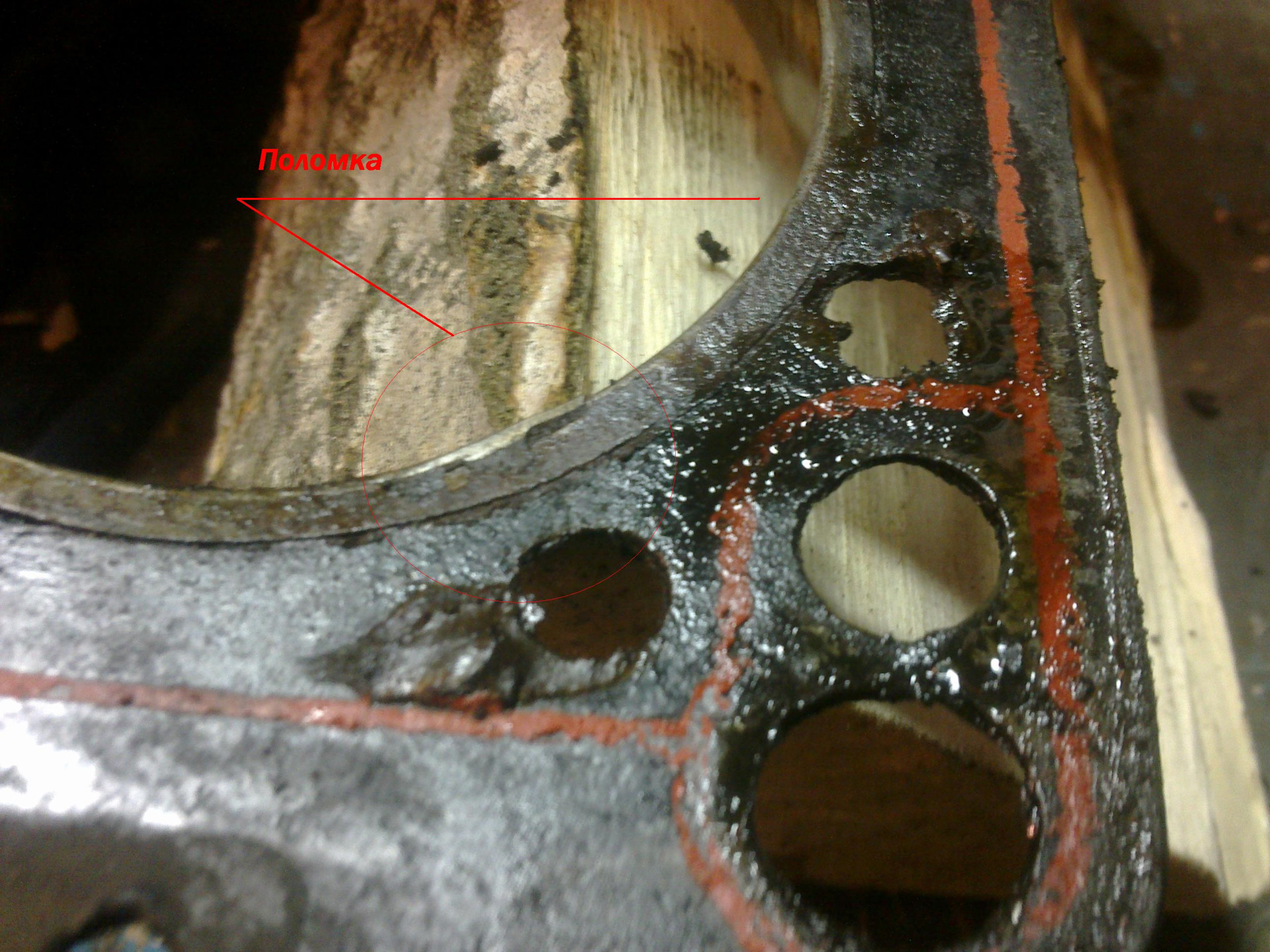 Вскрытие показало что прорыв таки был, но не в третьем или четвертом цилиндре как я и предпологал, а в первом и и-за разрушения металической кромки прокладки.