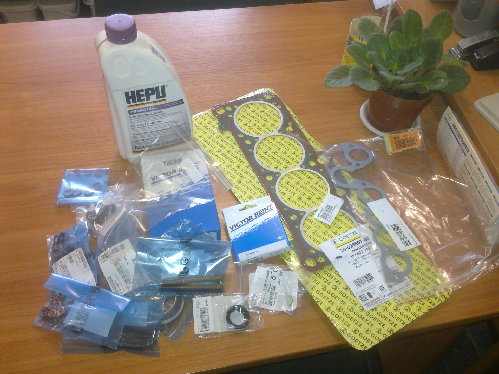 Да, утешал я себя етими давлениями в системе охлаждения до 1,2-1,4 бара, тянул, тянул но сердце моё не выдержало и я решил покончить с етой епопеей езды на пороховой бочке, а вернее паровой))) Как только потеплело и я начал выезжать в более длительные поездки стал таки замечать что пар из выхлопной даже при прогретой авто и даже когда на улице уже далеко за +15 С° никуда не исчезал. Он был не густой, редкий но он был. Хотя температура всегда держалась в пределах 85-95 С° и уровень антифриза ± тоже в норме. Пользуясь руководством начал разбор двигателя, перед етим закупил запчастей максимально из списка колеги з тех сайта VW Павла ако TPN, за чей совет и список ему спасибо.