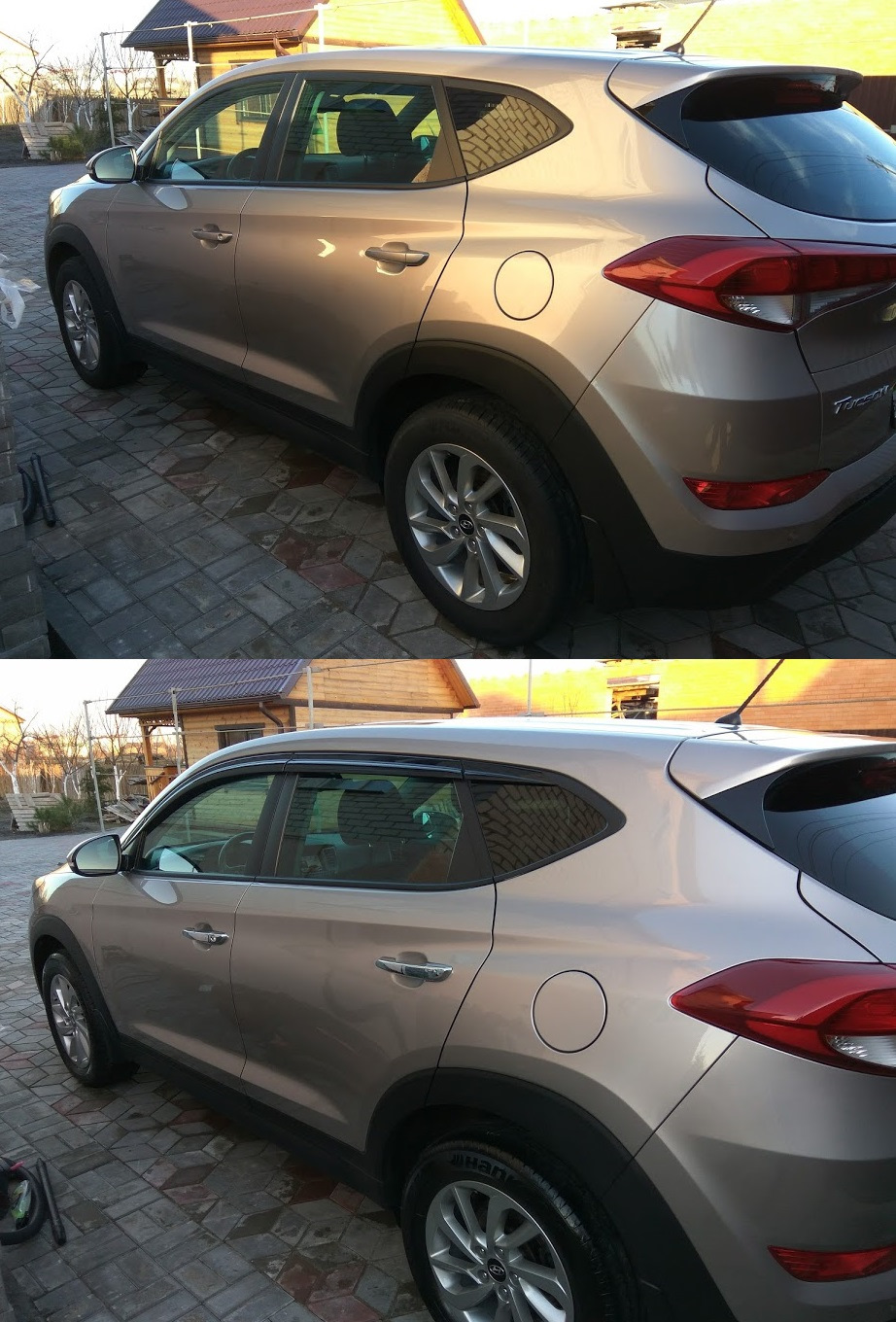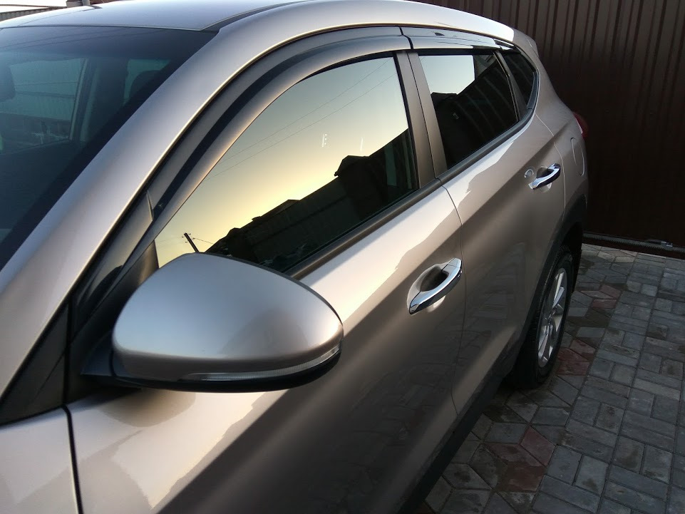 На бак нашлепка на любителя, лишь бы вам нравилось. А под окнами счас у всех туссанов, все они российской сборки. Я же еще урвал чешской, они шли без хром полосы. А так хрома на машине реально мало