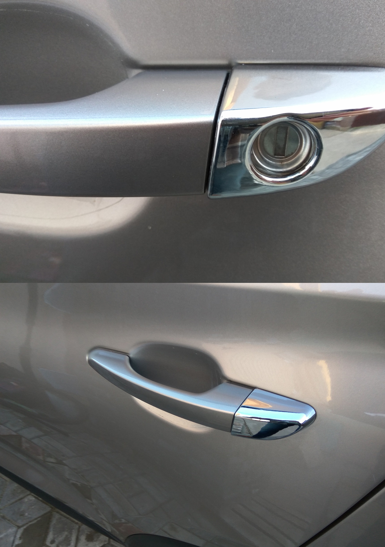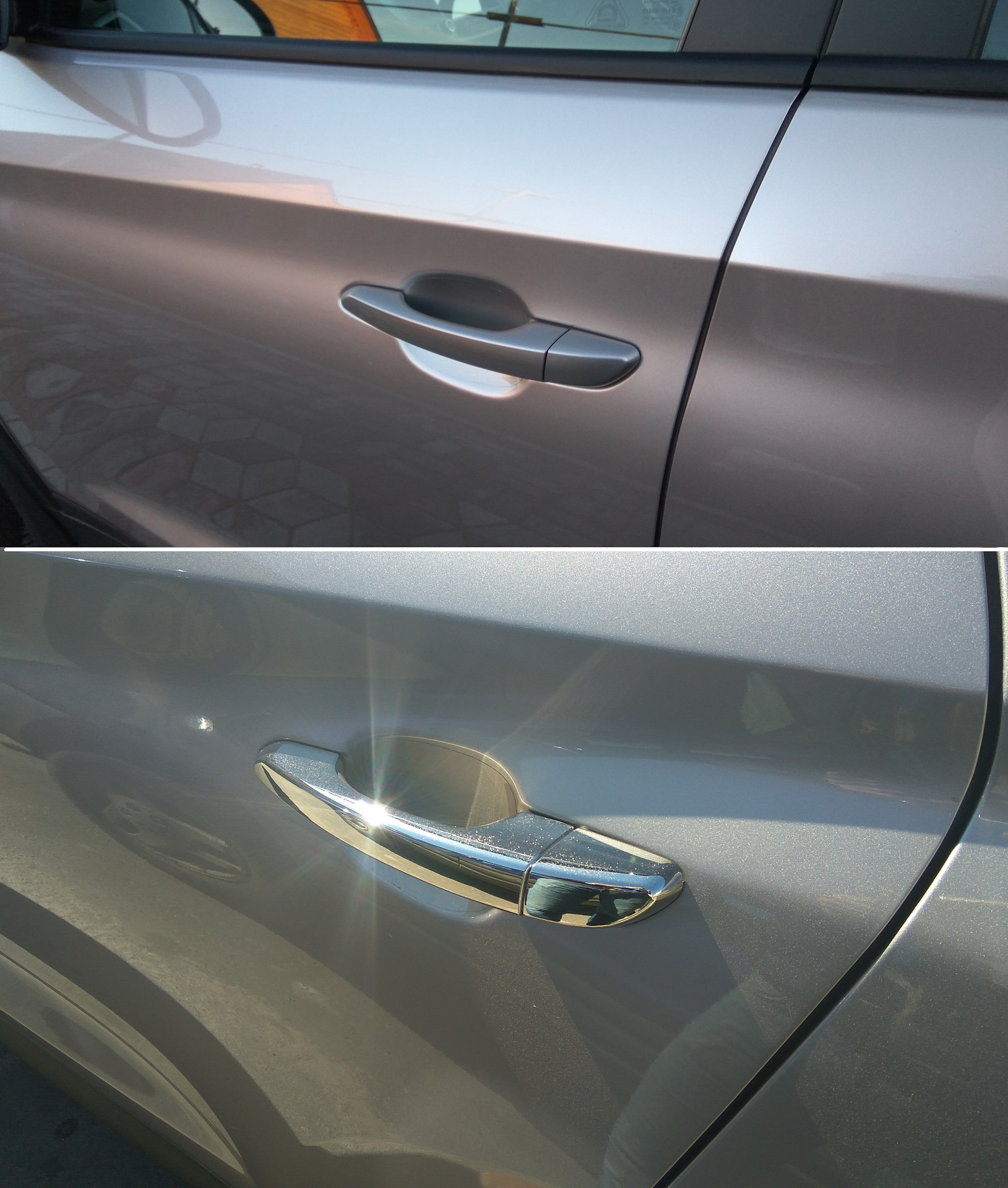 В Европе и Америке с завода ручки в топовых комплектациях идут хромированные, в России же в любой комплектации ручки идут обычные, в цвет кузова.