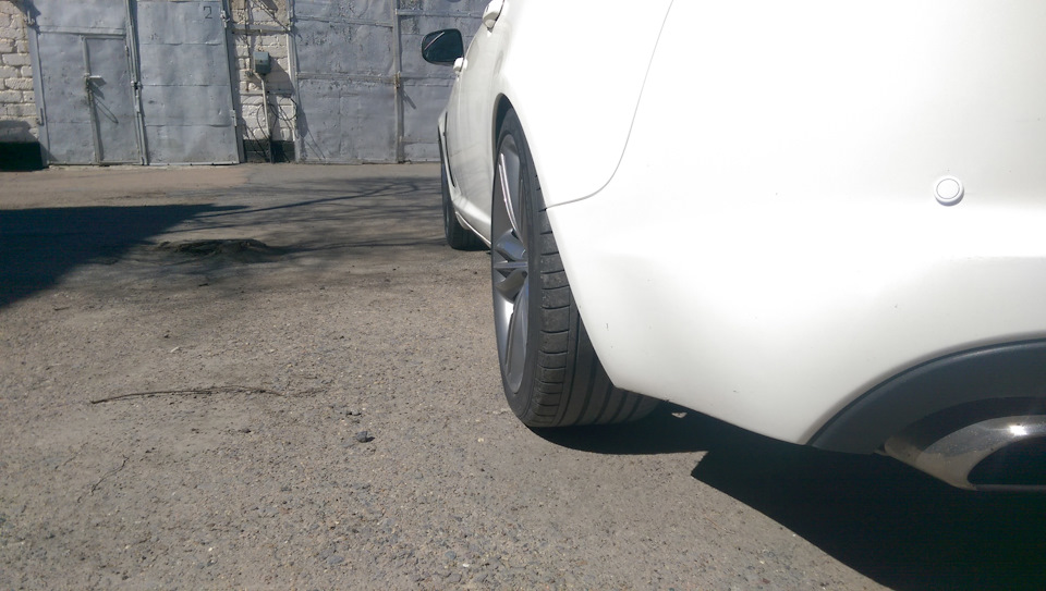 И сегодня свершилось чудо! Они влезли и даже почти не трут! Только передние самую малость при максимальном вывороте руля. Параметры — перед 245/40/20, зад — 275/35/20. Катался сегодня довольный =)