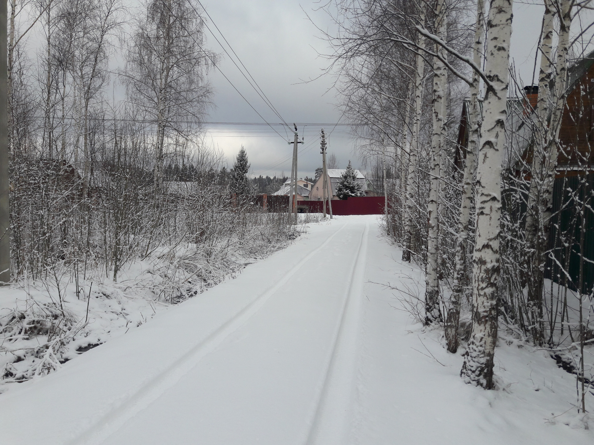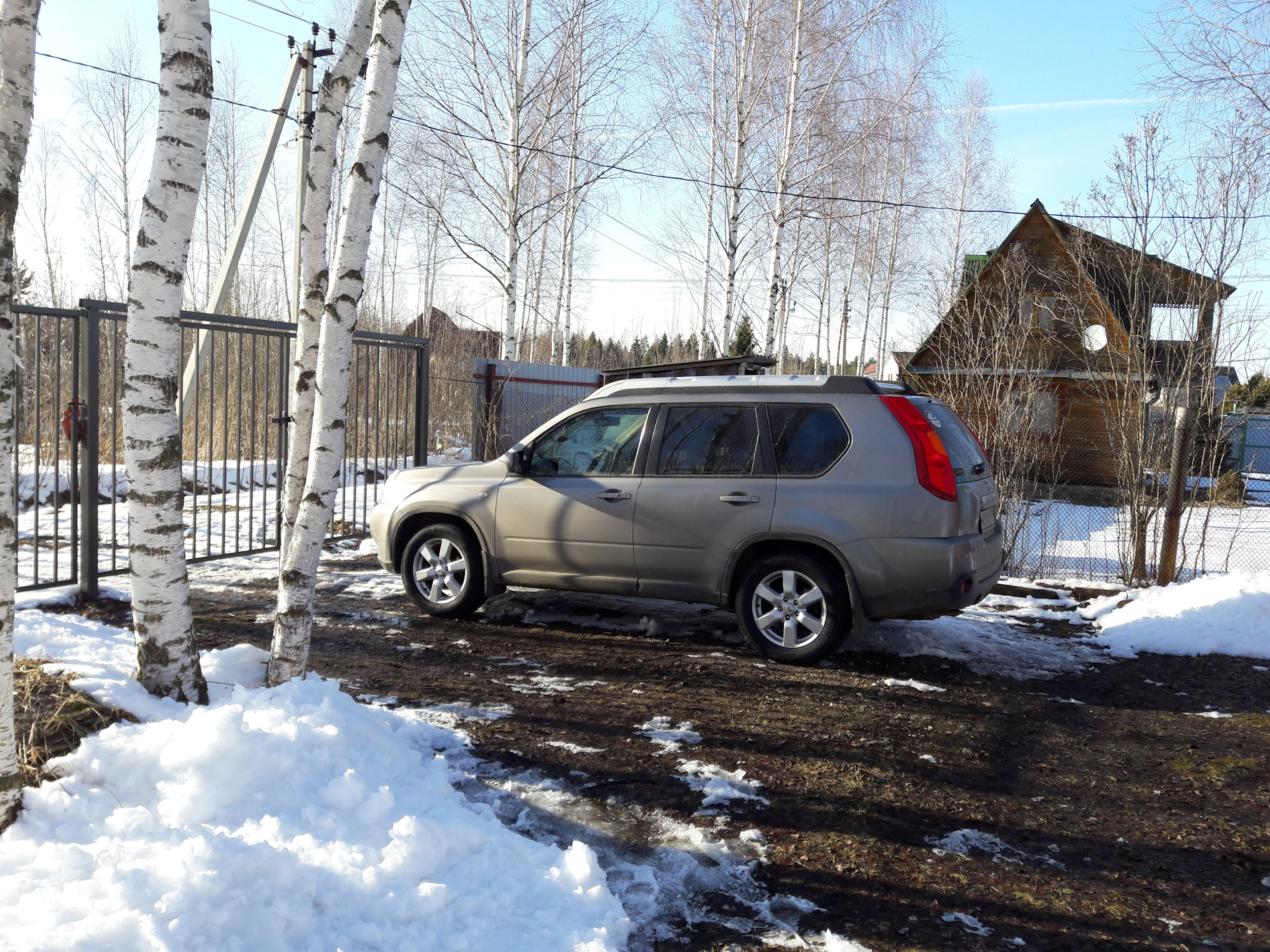 В субботу утром выпал снег сантиметров десять. Дал кружок по дачам, чтобы колёса сели. Прет как танк даже на 2WD.