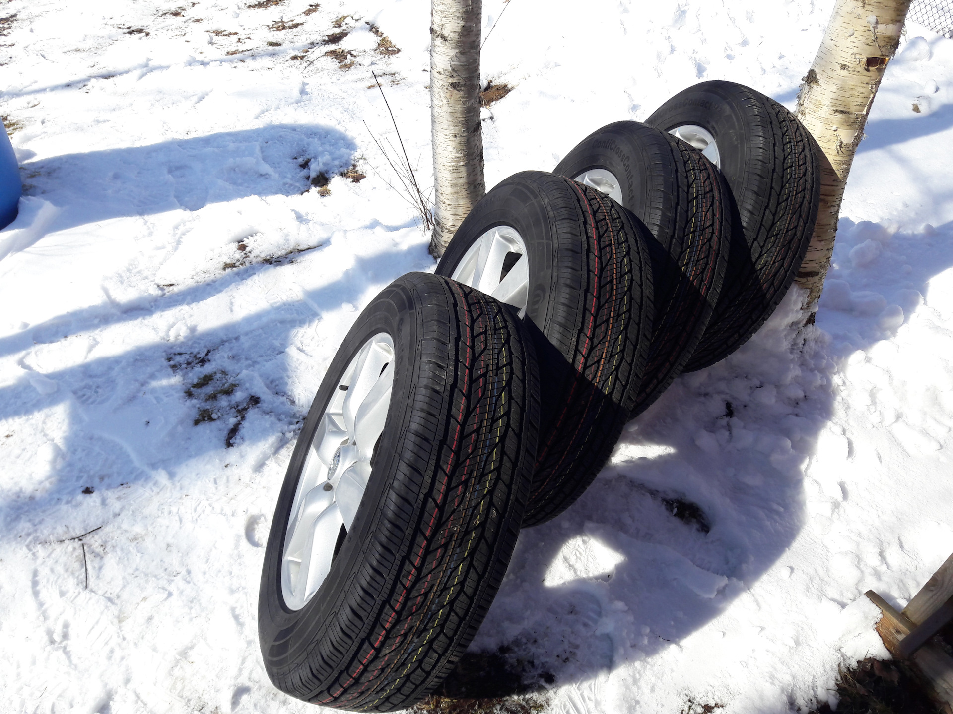 Наконец, вроде, пришла весна. Еще в январе была куплена и нахлобучена на старые родные диски новая резина Continental ContiCrossContact LX2. Долго думал, смотрел на ёку геолендер. Но потом решил, что всё же 90% у меня шоссе, а до дачи и деревни я и на старом Данлопе ST2 проползал. И буду ориентироваться на резину с шоссейным уклоном.