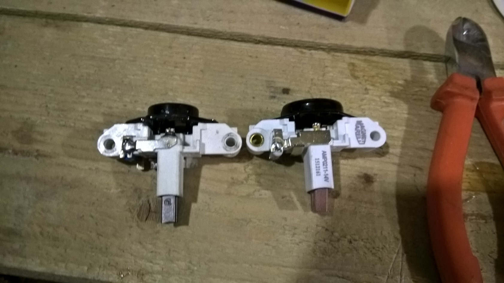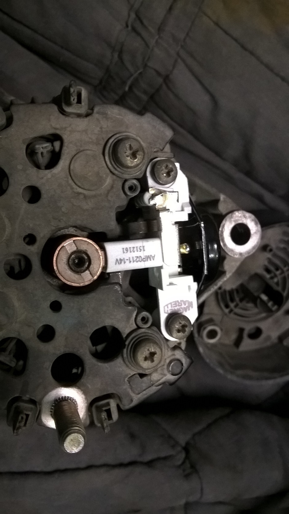 Месяца не прошло после замены регулятора напряжения, как снова сеть "прыгнула", но сейчас в низ. Стою недавно в пробке после работы. У нас тут дороги ремонтировать начали — поиздолбали, изуродовали как Бог черепаху. Смотрю, а приборчик-то начал "падать": напряжение всё ниже и ниже. Вскоре вообще до 13 вольт упало напряжение. Что бы хоть как-то домой доехать, пришлось всё выключить: и печку, и свет, и даже музыку. На пару десяток поднялось. Думаю, вот это Хелла, вот это "крутая" фирма-производитель недавно установленного регулятора напряжения (Hella 5DR 004 242 041)! Потом подумал, что а вдруг это что-то другое в генераторе барахлит? Один хороший товарищ предложил поставить заведомо исправный запасной бошевский регулятор. Поставил, поездил — да, генератор в порядке, бошевский регулятор исправно показывал 14 и 1 десятую вольта. Эта история напомнила мне моего старого Жигулёночка в который хоть каждый день ставь новые запчасти, а они быстро-быстро ломаются. И цена не является показателем качества. Заказал новый регулятор, на этот раз подешевле — MAGNETI MARELLI AMP0211. Поезжу, посмотрю, но название нравится — что-то такое "красивое итальянское".