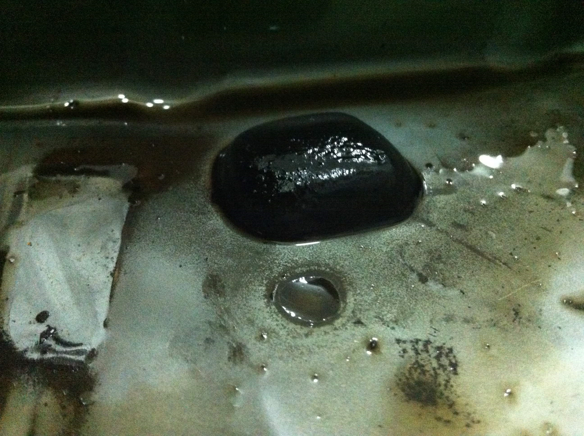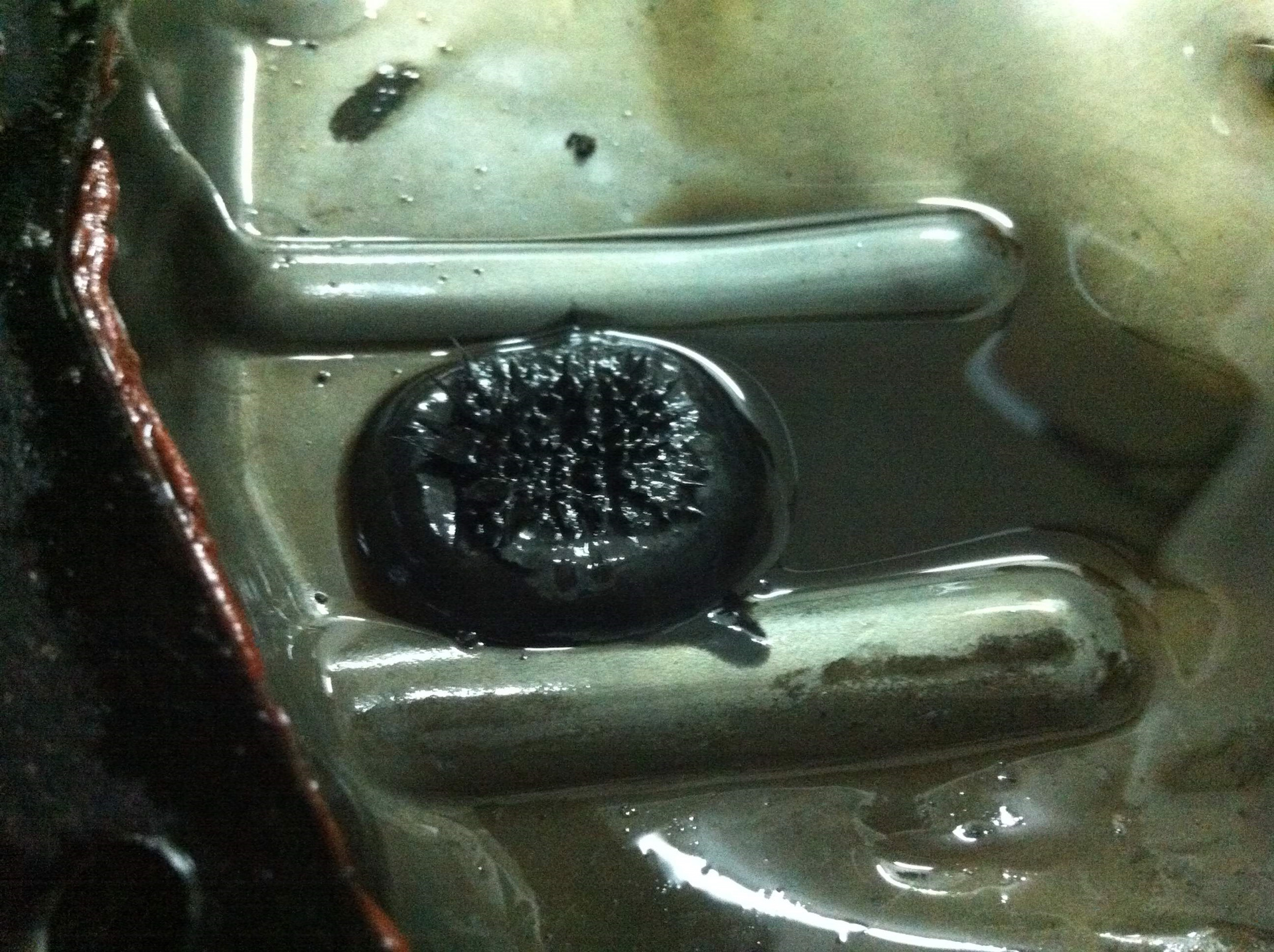А вот в старой коробке и масло было чернющее, и магниты… на которых остатки задней передачи в виде слизняков))