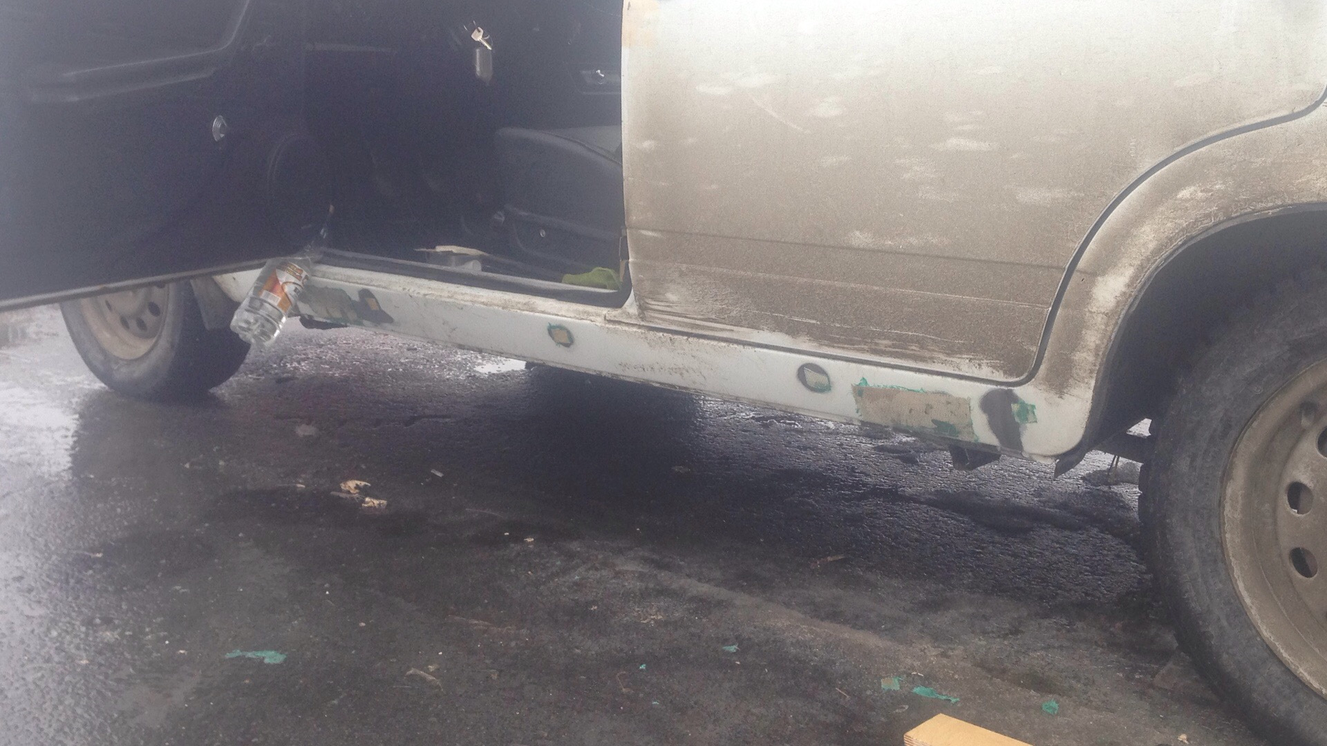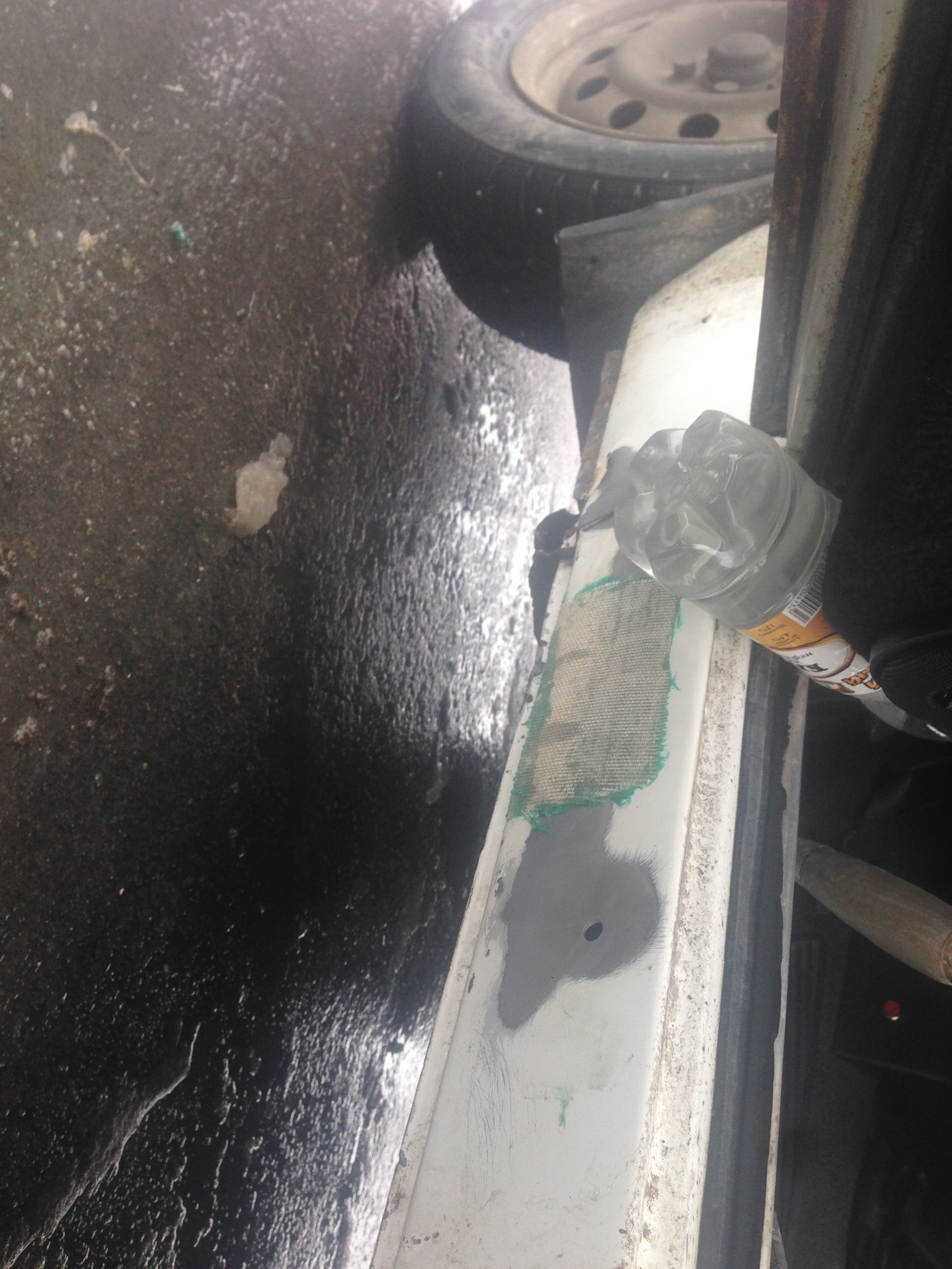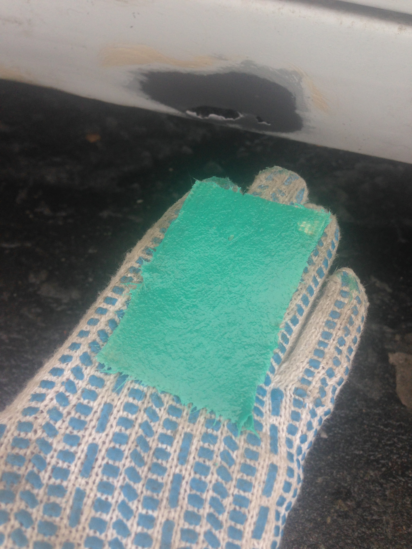 Ну так как я машину готовил к покраске я решил их тоже подремонтировать, хотел переварить, но загнули мне за два порога за работу 10.000 и чот нифига цена не порадовала… В общем не ломая головы, взял шпаклевку со стекловолокном, и обычную стеклоткань, которой теплотрассы обматывают:)) конечно можно использовать эпоксидный клей или смола не знаю как правильно, но я решил сделать так)