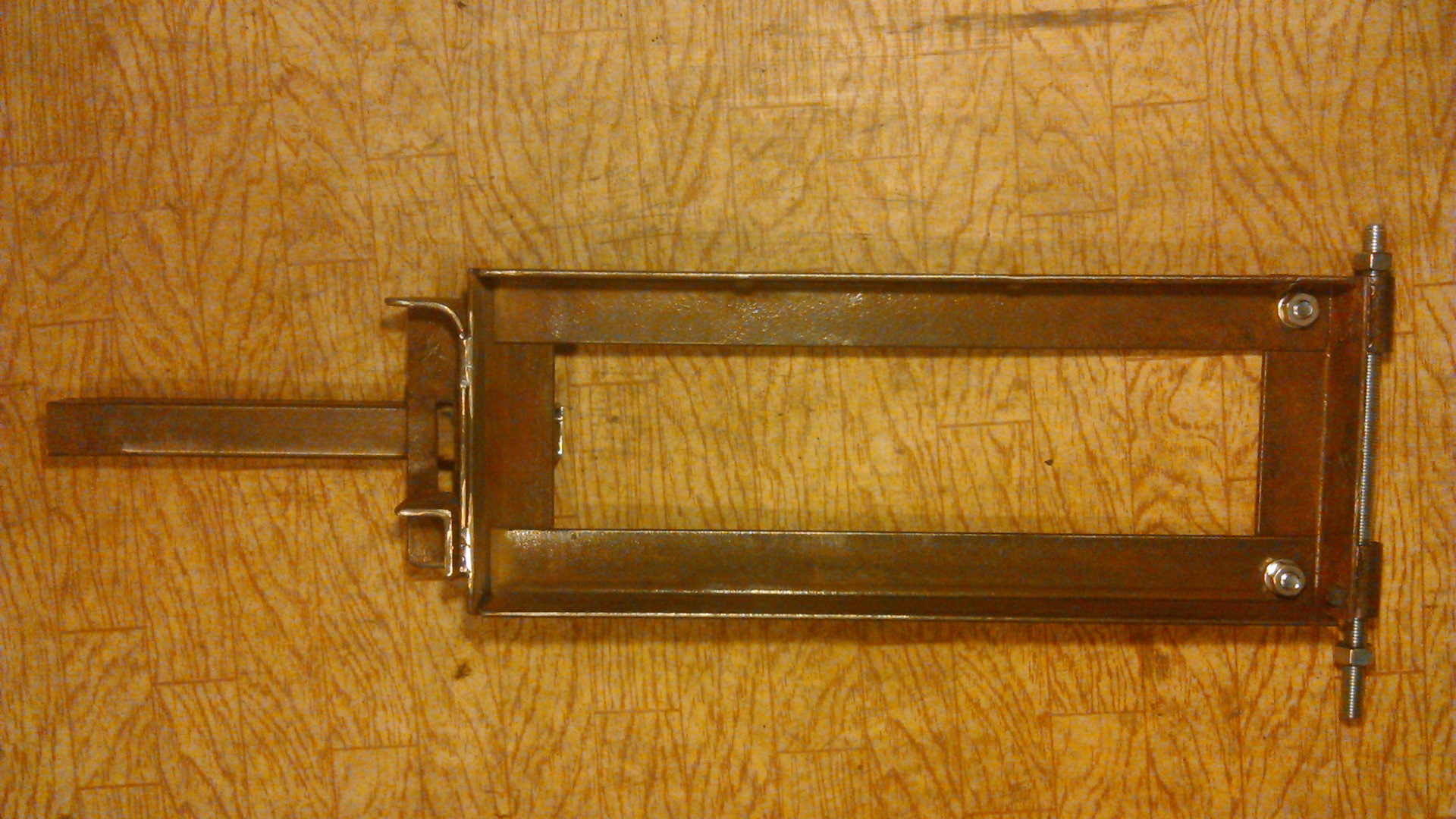 Из-за ручки приладу не удается в положении "хранение" просто приставить к стене, опустив вниз (упирается в пол). Надо поднимать вверх и делать там фиксатор (сначала была мысля такая), затем решил, что не стоит усложнять, мне эта прилада понадобится в лучшем случае 1 раз в 2-3 года, буду просто выкручивать шпильку и крепить приладу в направляющих (позже доделаю и выложу).