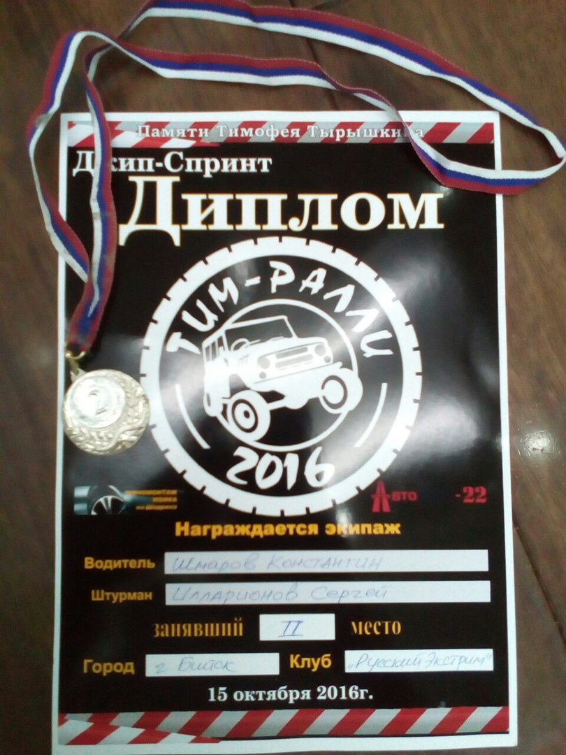 2е место Спринт "Тим Ралли"2016