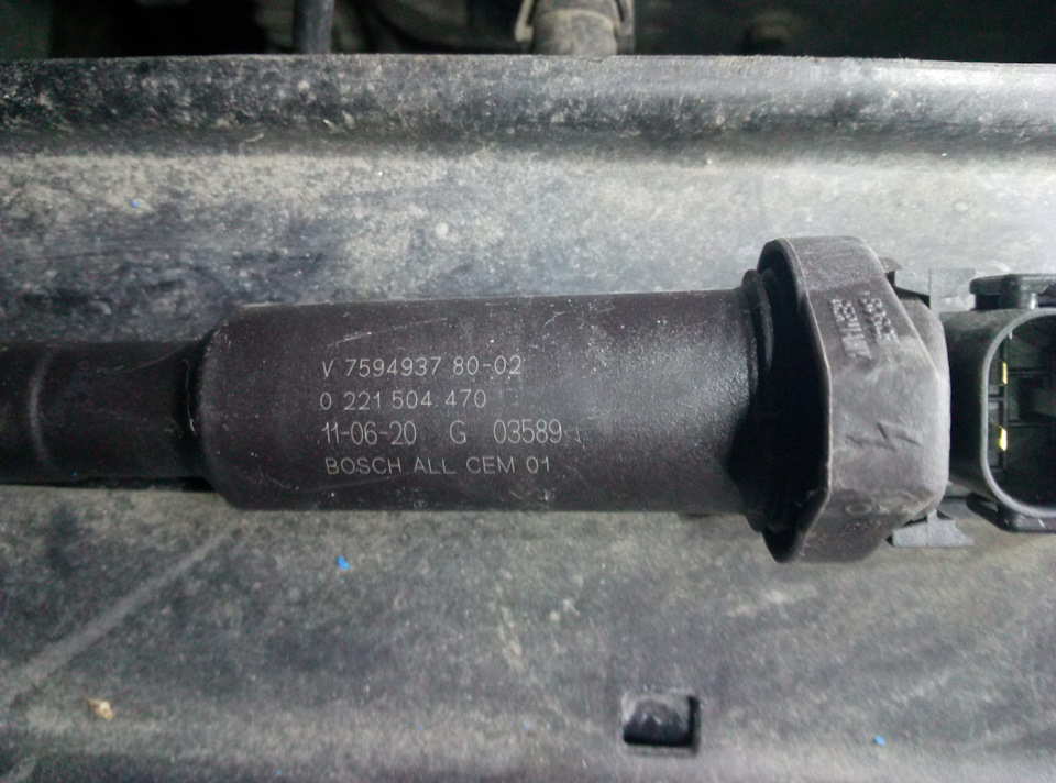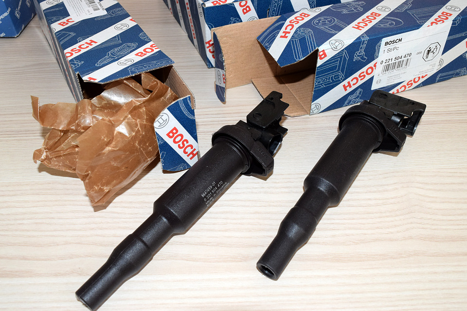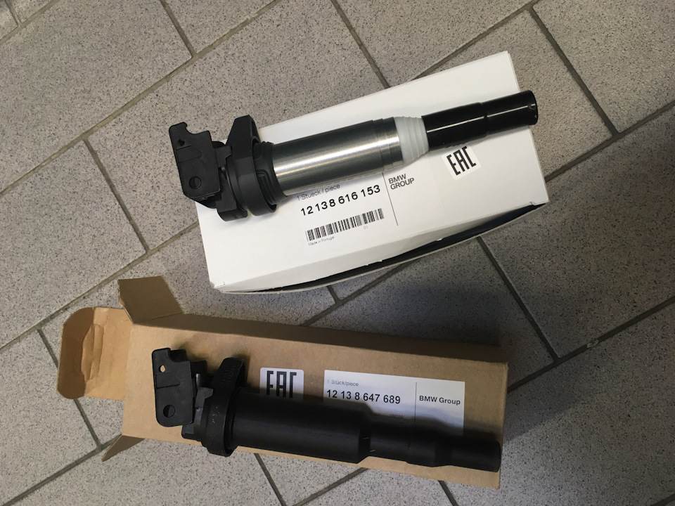 Катушки приехали и на вид были совершенно такие же, как на фотографиях оригинальных катушек. Даже строчки с номерами деталей, в том числе BMW-шным, на месте. Так и катались эти катушки в багажнике на случай выхода из строя одного-двух старичков.