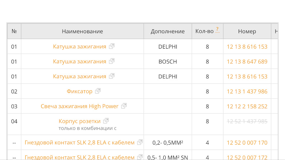 Какой вывод? Да это привет от ETK! Причем, это не проблема только онлайн-версий: ровно те же номера катушек присутствуют и в оффлайн-версии от самой BMW Group. А меня с самого начала должна была смутить применимость данных катушек мотору N63, у которого свечи вообще другие, более тонкие и длинные. Да, можно предположить, что вместе с катушками изменили и свечи, но последнюю ревизию оных мне поставили давным-давно, а катушки не подошли.