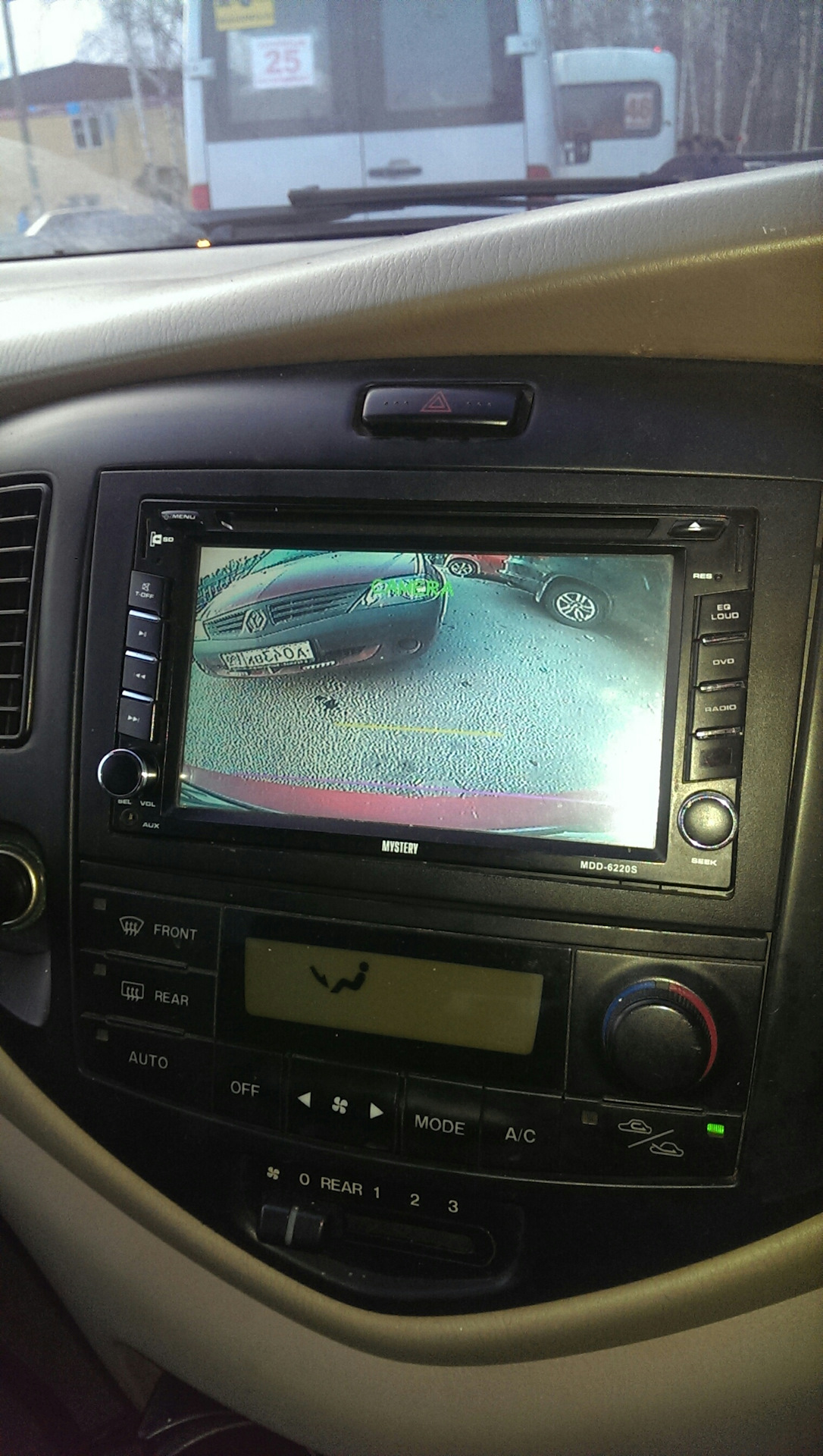 Заказал камеру, решил поставить, долго не заморачивался прилепил на стойку, кнопку включения врезал в панель, вот что получилось ) Так же запилил и заднюю камеру парковки )