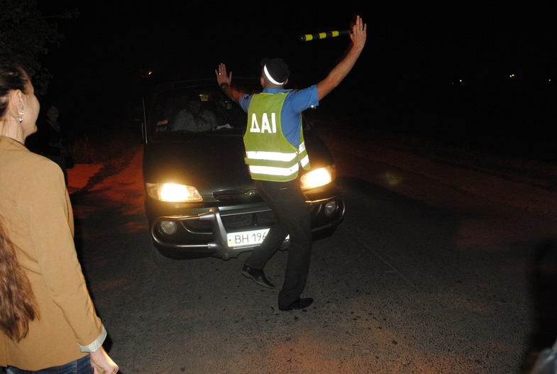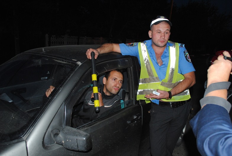 я живу на центральной улице, тк что движение у нас нормальное, так ещё веселее=) вышел и давай тормозить и спаивать народ))) некоторые гости говорили что первый раз видели что б 90% остановленных водителей не отказывались от водки))))) один из водителей даже подарил ему ментовскую желетку)))