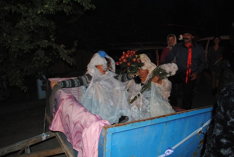 собрались просто посидеть дома, ничего такого… на первый день было приглашено 60 человек, на второй пришло 40=) но они вооооообще не пожалели что пришли))) после того как "немножко" посидели, было принято решение что надо катать родителей, быстренько нашли свободный прицеп, крёсный притащил откуда то, украсили, нарядики невест с занавесок, бате беретик и погнали)))