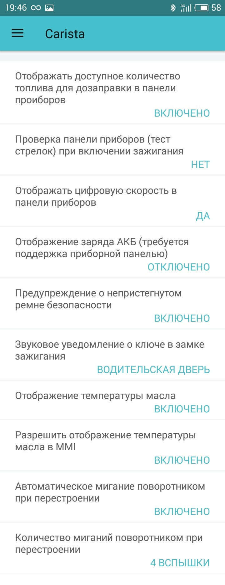 Эта программа читает ошибки во всех блоках. Насколько правильно, мне пока сложно понять. Одну ошибку программа зафиксировала. Буду проверять серьезными средствами. Проблему описал тут. Также позволяет производить настройку некоторых функций, что очень удобно для дилетанта и очень просто. (про стоимость тем более умолчу :-) ) Я активировал 4-ех кратное мигание указателей поворота. Доступный функционал программы по возможным активашкам прилагаю в фото.