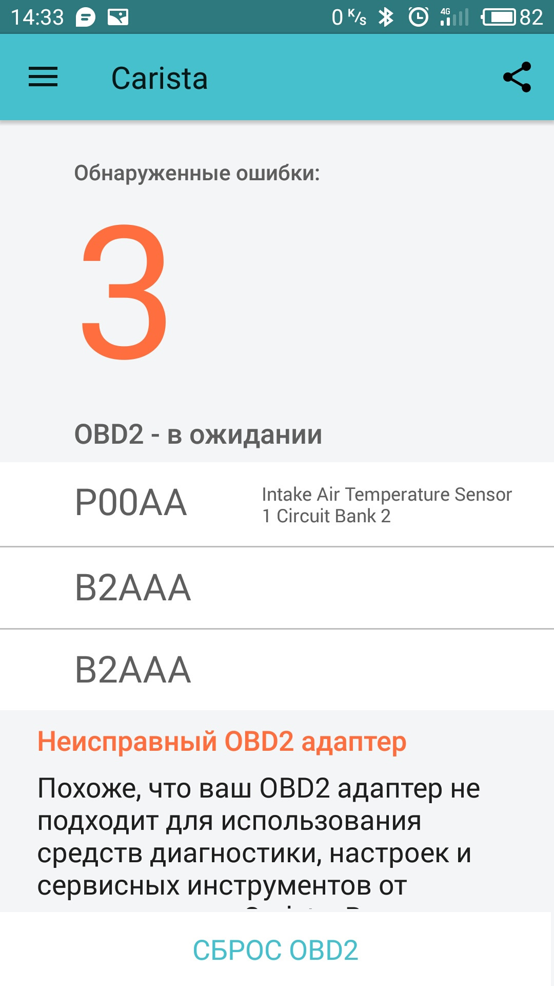 Продублирую и здесь мысль: Кариста прога дорогая и глючная. Показывает те ошибки, которых в реале нет. Для владельцев айфонов есть более функциональное приложение и ошибки показывает без глюков — www.drive2.ru/l/470110766058439087/ Но пока не скачал базу именно под октавию, показывала у меня 2 лишние ошибки. Скачал справочник — все ок, ошибок нет. С каристой не прокатывает.