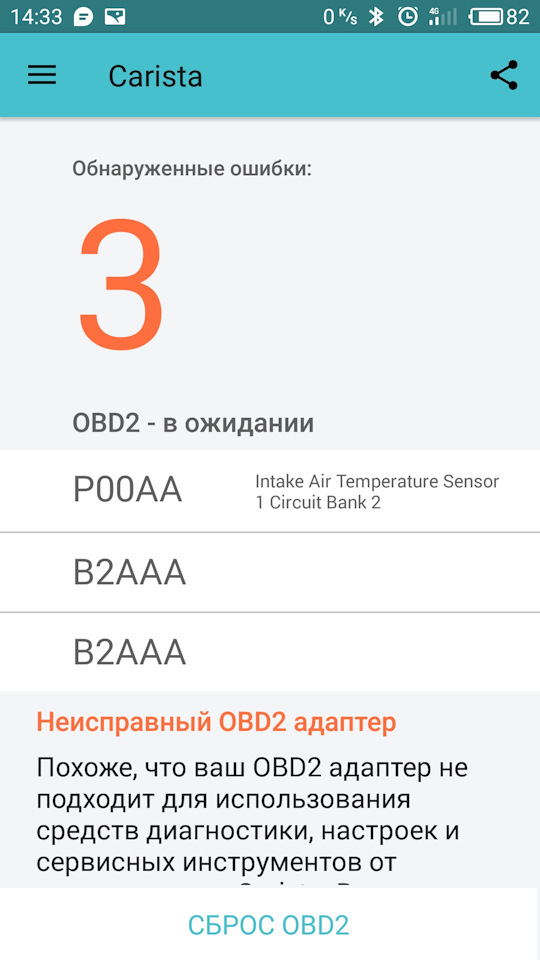 В моем случае в бесплатной версии Carista нашла ошибку, но даже по-моему не дала ее номер. Предложила программу купить. Ради интереса я пропатчил ее, снова проверил машину, но ошибки уже не было. Есть у меня такое предположение, подтверждение которому я еще где-то встречал, что выдумывает она ошибки для того чтобы люди пугались и full покупали. А по факту ошибок нет. Поэтому для себя решил — пока машина на гарантии, пусть с ошибками разбирается дилер. А после куплю "Васю".