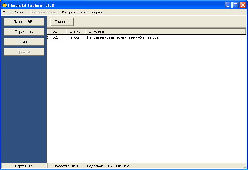 В статье рекомендуется соединить перемычкой контакты 5 и 6 иммобилайзера, якобы это позволяет завести машину, однако мне это не помогло — машина по прежнему отказывался заводиться. Сходил за запасным ключом — тоже не заводится, подключил ноутбук, через Шевроле Эксплорер считал ошибку: