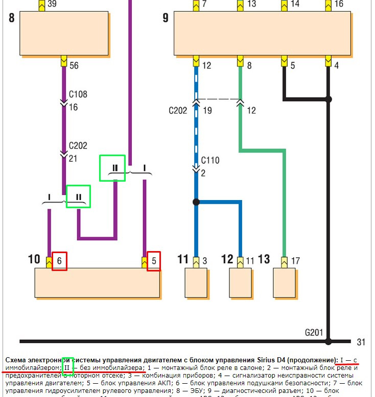 А то, что Вы подчеркнули красным — это просто совмещение на одном листе двух схем — с иммо и без него (бывают такие комплектации с завода, не в России конечно). Без иммо провод К-линии от ЭБУ идет сразу на разъем DLC (пин 7), естественно. Если Иммо есть — то К-линия проходит сквозь него. Ну и? В чем смысл замыкания этих двух проводов? Отключить иммо от К-линии? Ну тогда машина все равно не заведется, потому что ЭБУ просто не увидит иммо (только номер ошибки будет другой).
