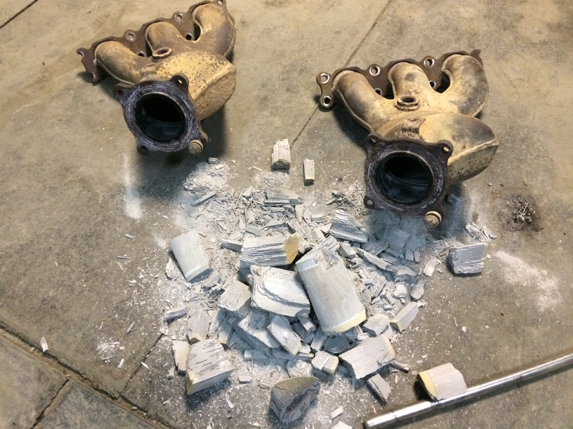 Сняв коллекторы малость прихерел…катик уже изрядно оплавился…сменил цвет на жжёно-желтый.