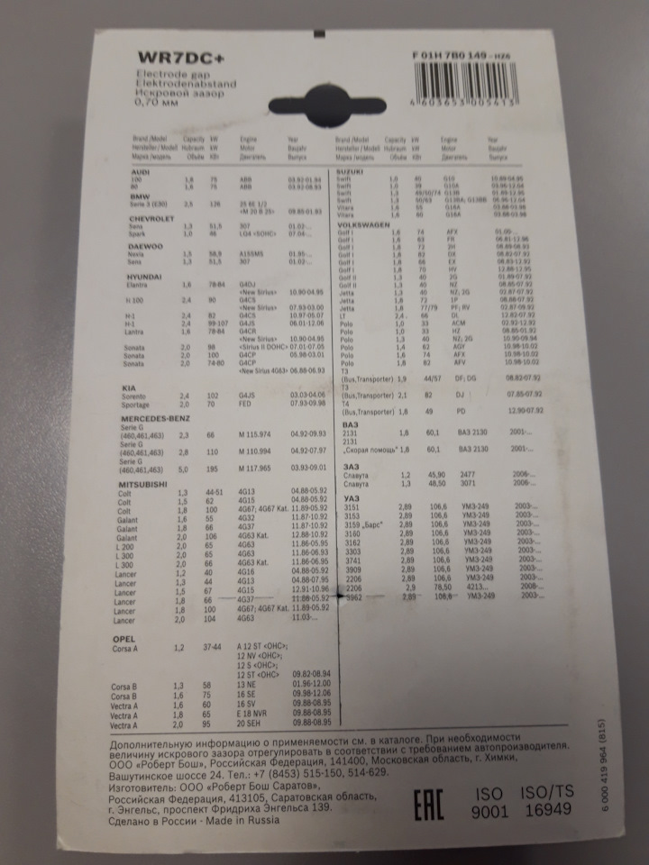 На самом деле свечи отличные, только есть небольшая "засада". По маркировке видно, что они как бы подходят для Ланоса. Только на 8 кл. Ланосе зазор должен быть 0.7 — 0.8, а у этих свечей зазор 1.1.