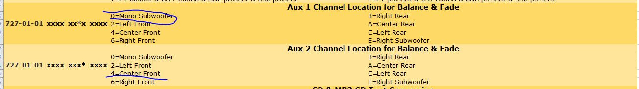 Доброго времени суток, не подскажите хочу вывести линейные на саб, только недавно поменял sync1 на sync 2, центрального динамика нет и нет усилителя(штатного) какие параментры надо выставить именно только для линейника моно саба, и какое напряжение должно быть на пинах 4,17 в разьеме C240B