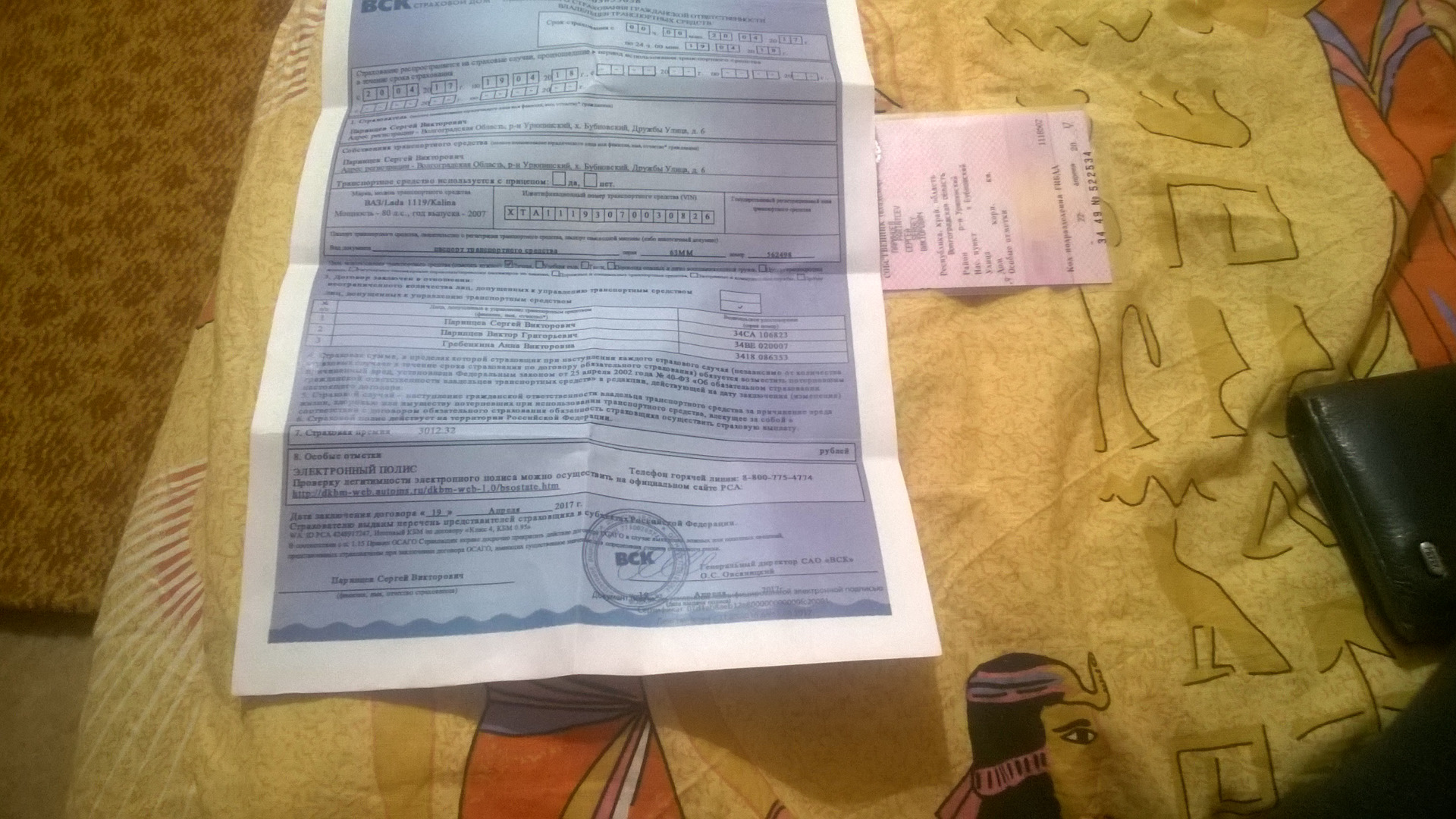 Вот и дошли руки поставить на учет. В этот раз решил все сделать по нано технологиям)) зашел на сайт ВСК страхования зарегился, далее внес все данные, запросили скан копию ПТС, отправил, прошел проверку РСА далее внес водителей, все прошли проверку, оплатил картой 3012 руб! Можно было бы и дешевле но я не знал про скидки и что они могут быть. Суть вопроса такова что если ранее когда-то страховались россгострахе то они обнулены. Парни восстановили в течении месяца, и при мне застраховали за 1700 рубликов. Но у меня времени небыло. Хочу отметить что страховка сельская у меня. Копия полиса пришла на почту. Распечатал. Далее на гос услугах записался в гаи. На кануне поехал в гаи и взял бланк заявления, он сильно отличается от того что на оф сайте. Дома заполнил бланк. В гаи записался на 9:00 через гос услуги (придет смс с пин кодом, он нужен для того чтобы взять в гаи в терминале талон на это время) а так же распечатал билет, в 8:00 приехал на осмотр, на руках у меня СТС, ПТС, Копия ПТС, заполненое заявление, госпошлина на 510 рублей(это со скидкой 30% при оплате с гос услуг, не забудьте распечатать квитанцию, а то не примут), договор купли продажи, и моя распечатанная электронная страховка. Авто осмотрели, подхожу к 9:00 в окно. Все проверили, к 9:30 я получил доки и уехал. В общем ушли те времена очередей и ада. Пользуетесь электроникой и радуйтесь сэкономленным денежкам и времени. Только заполняйте доки же ошибок, а то потеряете времечко)