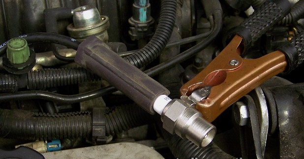 2) Подайте на нее массу при помощи кабеля для прикуривания "крокодилы". (Ну а если их у вас нет, то по старинке — кладите на массу. — Иштван)