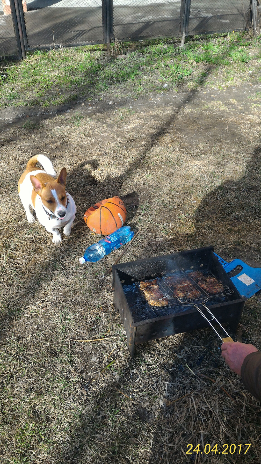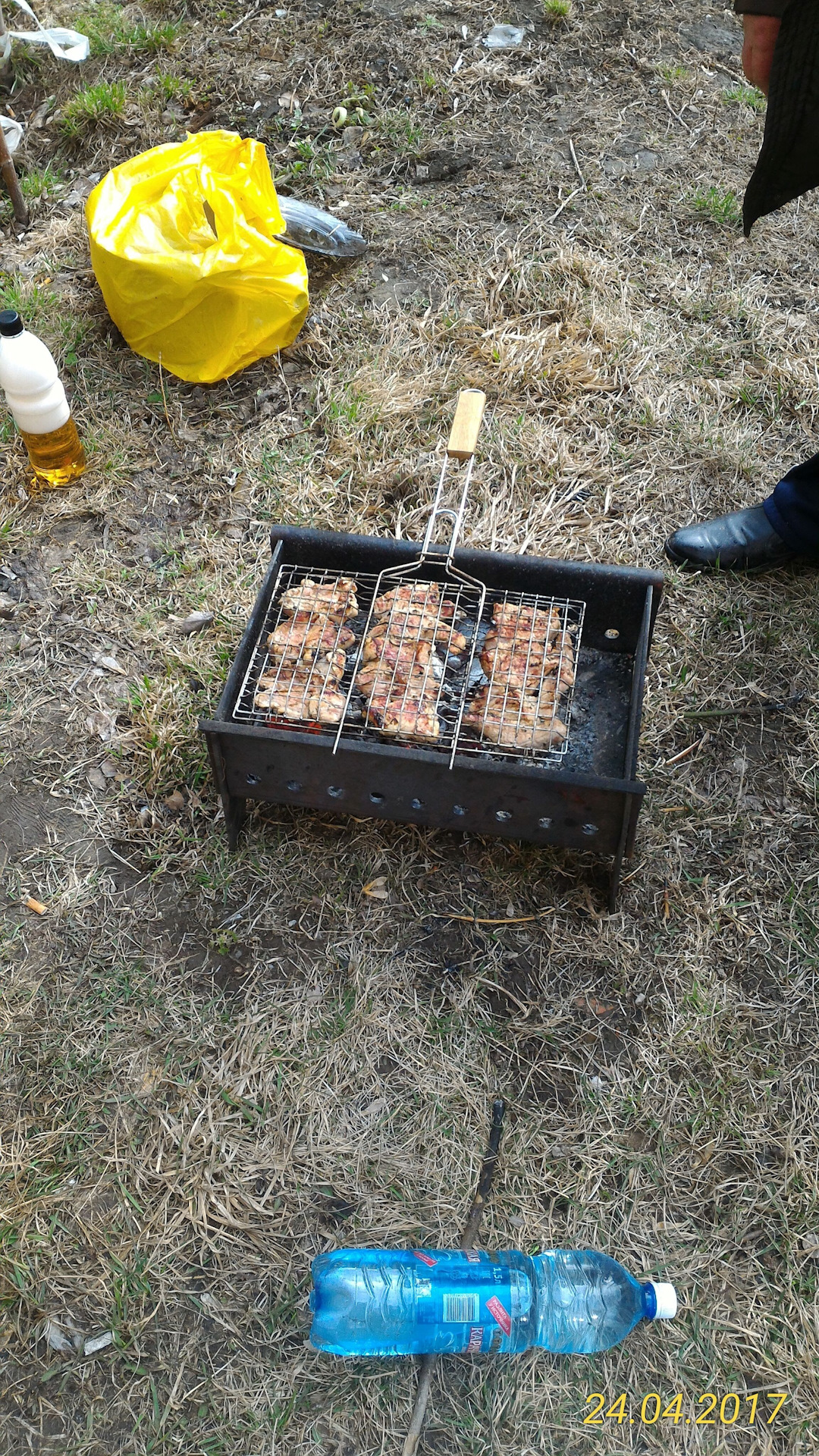 Прошла неделя. Воскресенье. Жарим шашлык под дождем. Звонок.