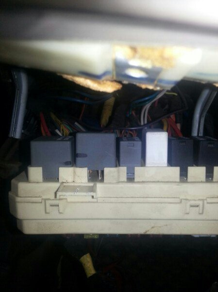 Ну и пока салон был разобран, сделал работу стеклоподъемников без зажигания. Вытягиваем на себя блок предохранителей, находим второе реле справа (то, которое я приподнял), и замыкаем контакты 87 и 30: