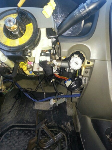Далее, требовалось снять замок зажигания, я опасался, что не смогу его снять без ключа зажигания, но когда начал ковырять, понял, что он выйдет без ключа, мне наверно повезло, что руль не был заблокирован.