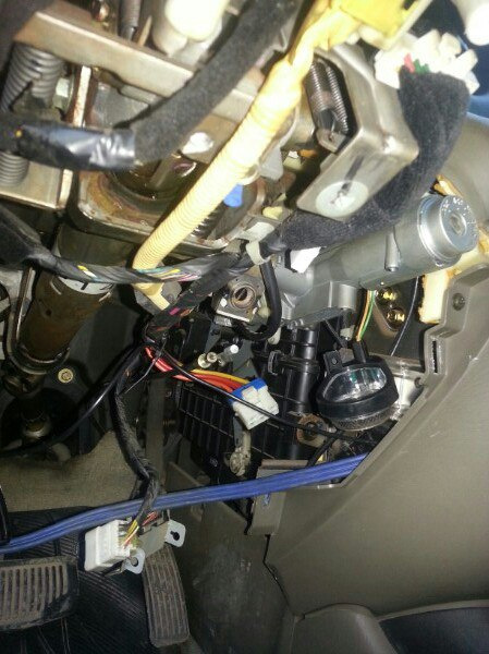 Поставил кнопку, все подключил, пытаюсь завести, не заводится, ну думаю понятно, штатный иммобилайзер не дает завести. Начал уже разбирать весь салон, чтоб ничего не мешало: