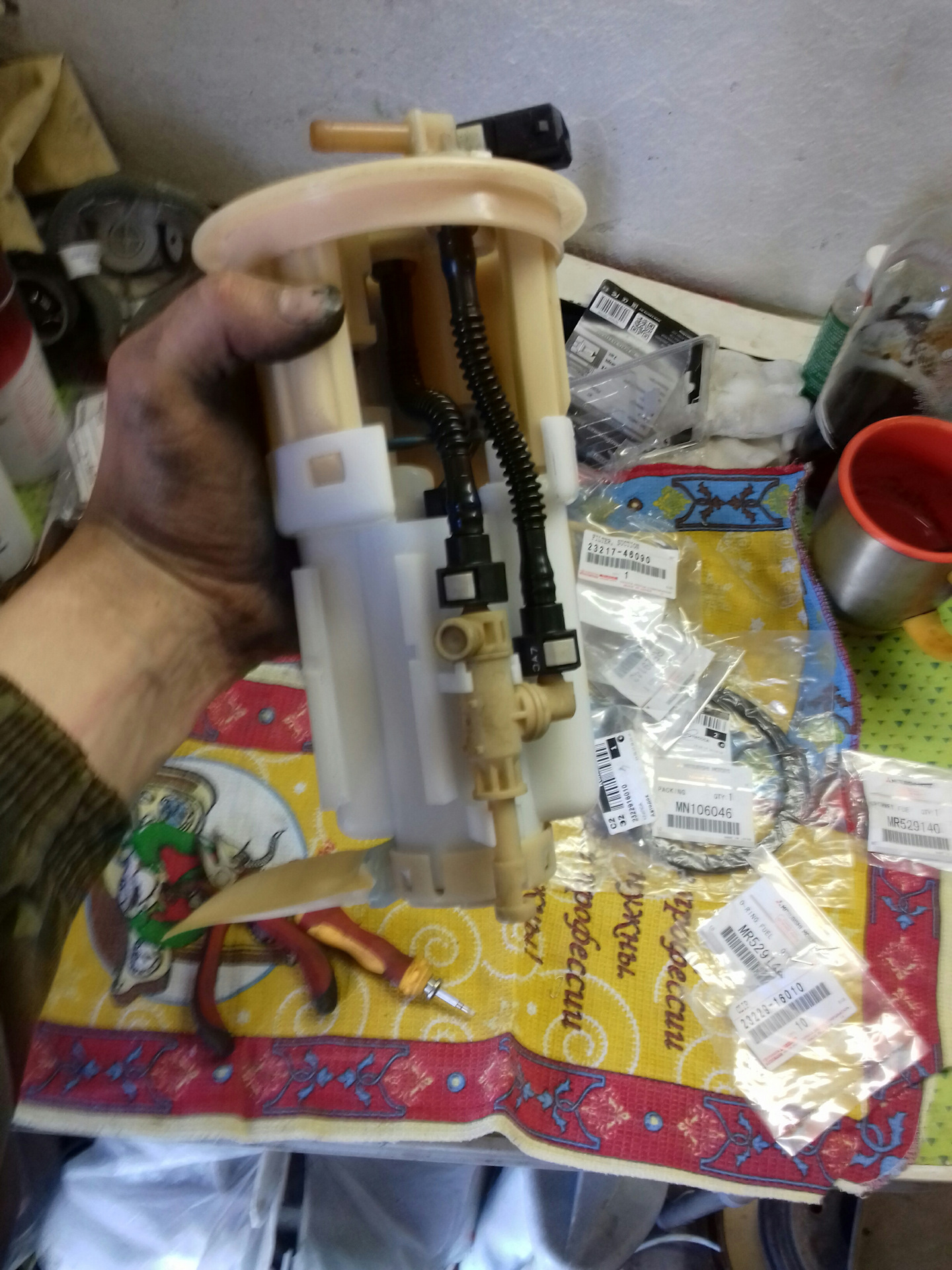 Видимо пятой точкой чуял что сюда надо залезть. Подготовился, купил материалы для обработки бензобака с наружи. И готовился к кошмарому состоянию бака из нутри. Но в нутри идеально))) а вот с наружи не очень. Ободрал коррозию, обработал цинкарем, прошпаклевал на всякий случай места где была коррозия. Загрунтовал кислотным грунтом, потом грунтом наполнителем в 5 слоев, а сверху облил лаком тоже в 5 слоев. Получилось очень хорошо мне кажется. Так же поменял все резиночки и фильтра в насосе. Старый фильтр в мега говняном состоянии, как машина вообще ездила бедняга. Заглушил всю систему управления паров на адсорбер, его програмно ещё зимой отключил Ёжик Пых. Прокинул новый шланг обратки и лишних паров. Завтра утром буду ставить на место и на дачу) Всех привет первой половиной праздников))) И ВОПРОС К ТЕМ КТО ДОЧИТАЛ ДО КОНЦА, ЧТО ЗА ФИРМА НАСОСА? не от жигулей случаем? Ни каких надписей кроме АЛЛАМ нет (