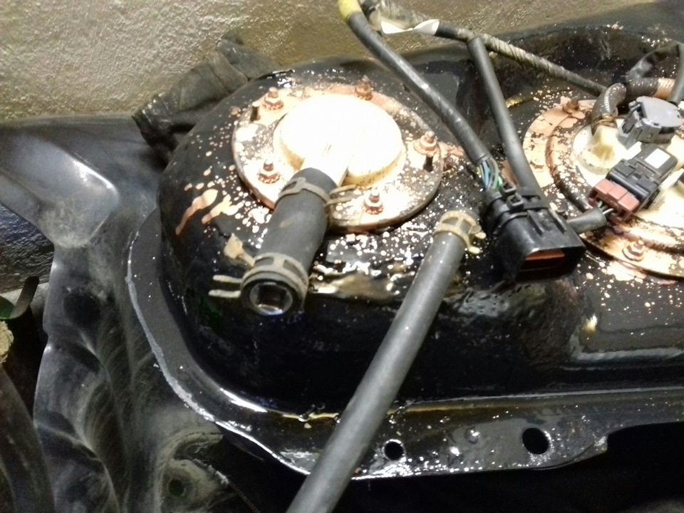 Снять и поставить бак не сложно, одному вполне подсилу. Чтоб шпильки не сломались омачивать их в течении недели ежедневно wd — 40 или ещё чем то. Чёрная маслянистая фигня это фильтр. Цен не помню, давно было. Сразу готовьтесь морально и финансово на горловину.