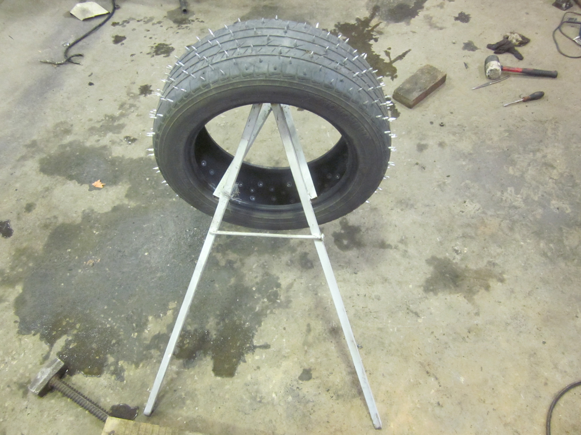 На фото-специальный стенд для проколачивания и проварки гаек на дюбелях ) этот стенд был у еще одного товарища, для постройки подобных колес для эндуро, адаптировали его под автомобильные колеса.