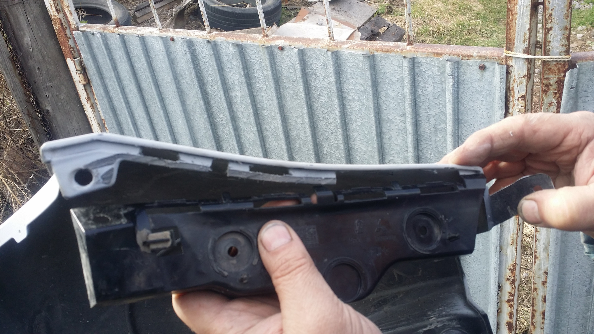 Всем здравствуйте. Сегодня покрасил передний бампер и решетку. Ближе к вечеру решил подогнать задний бампер, это конечно оказалась немного сложнее чем я думал. Если честно то мягкость японбампера меня разочаровала( крепления хлпкие, на евробампере они по жестче будут. В общем начнем, для подгонки снимаем замки на крыльях и по ним намечаем, что отрезать, что под резать.