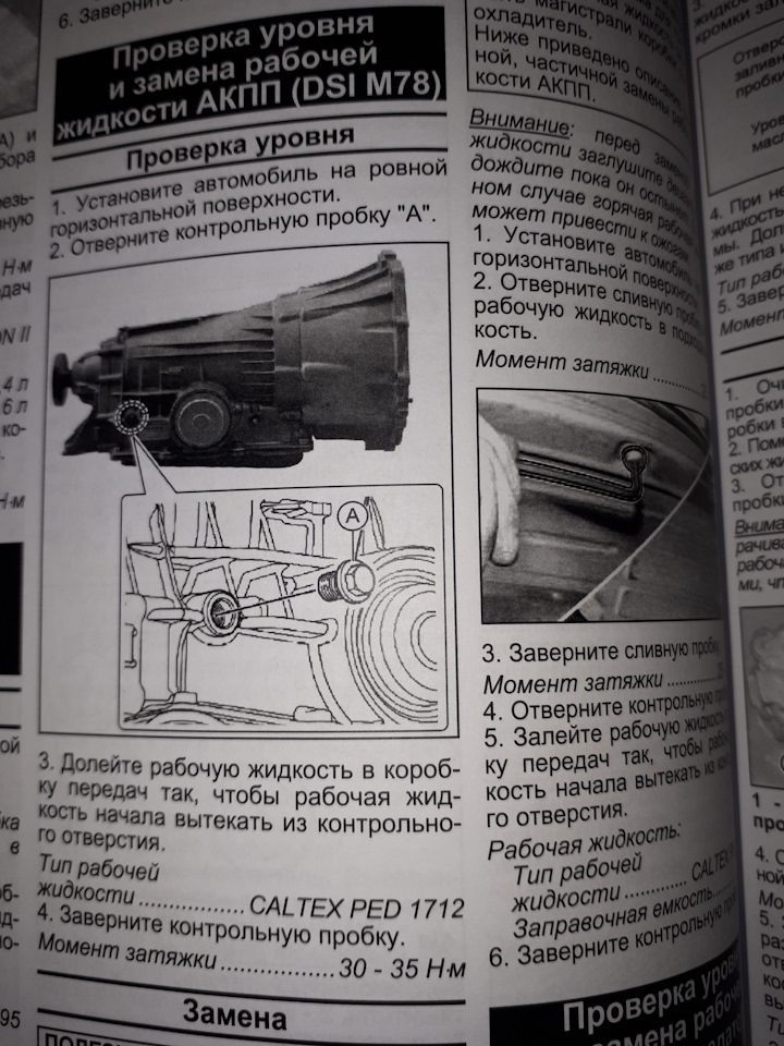 Заливная пробка сбоку на автомате, она же для проверки уровня. Заливать по уровень, потом разогреть до рабочей температуре и долить на прогретой АКПП( примерно 50°).