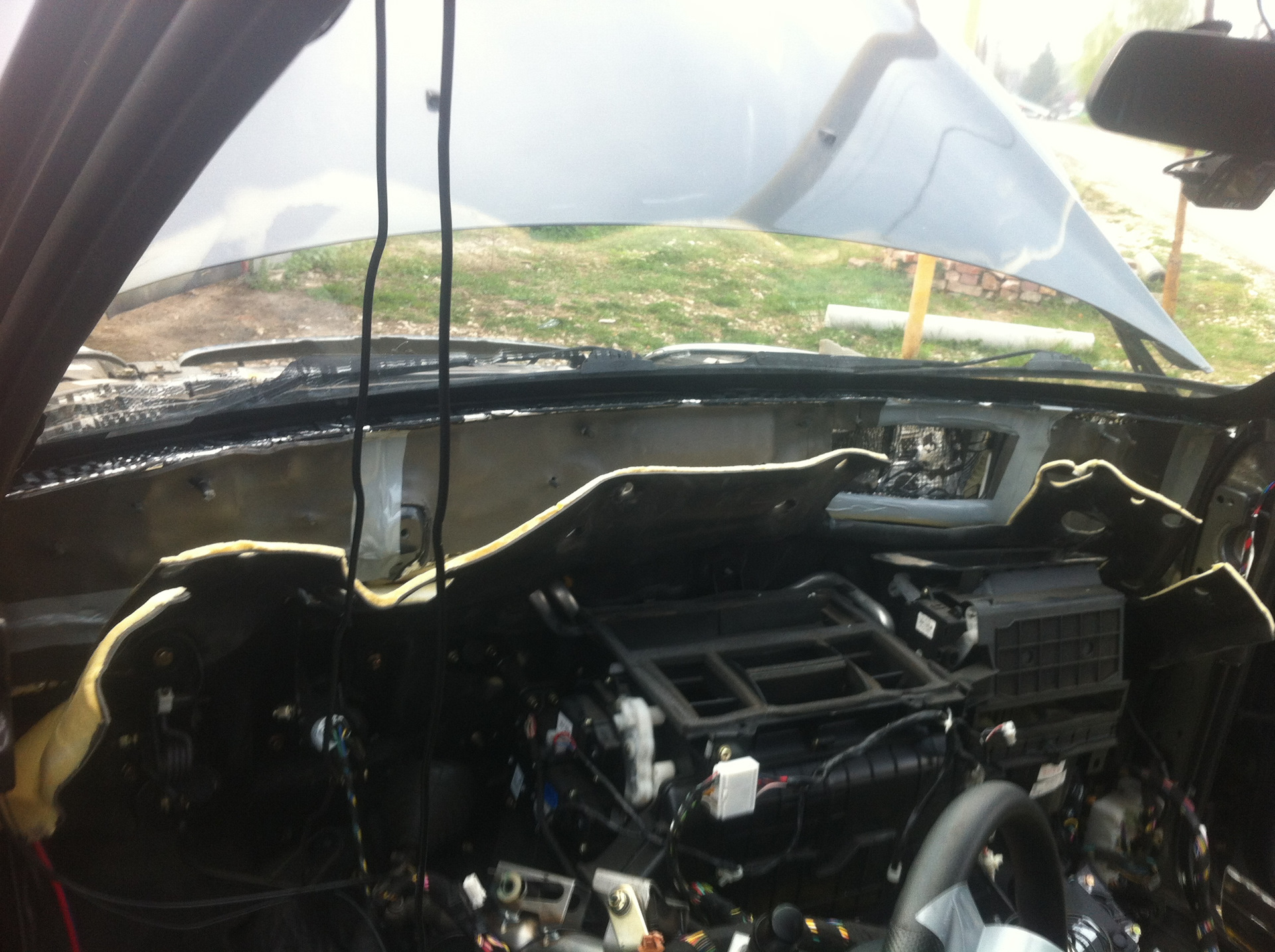 Итак, меня достал мотор ВАЗ 2101, ой, пордон, LFB479Q. Хотя какая разница? Что у того цепь, что у этого, что у того нет гидрокомпенсаторов, что у этого. Короче уж не знаю что там китайцы накопировали, но судя по звуку это точно не 1ZZ-FE. Мотор очень шумный. Ситуация усугубляется более чем скромной штатной шумоизоляцией ну и общую картину дополняет не менее "тихая" коробка переключения передач. Короче достал меня этот мотор и я психанул. Сделав ранее шумку всего, кроме крыши и собственно моторного отсека 4 дня назад решил освободить (временно) салон от "топедо" дабы обклеить всё, куда руки дотянуться. И вот что получилось.