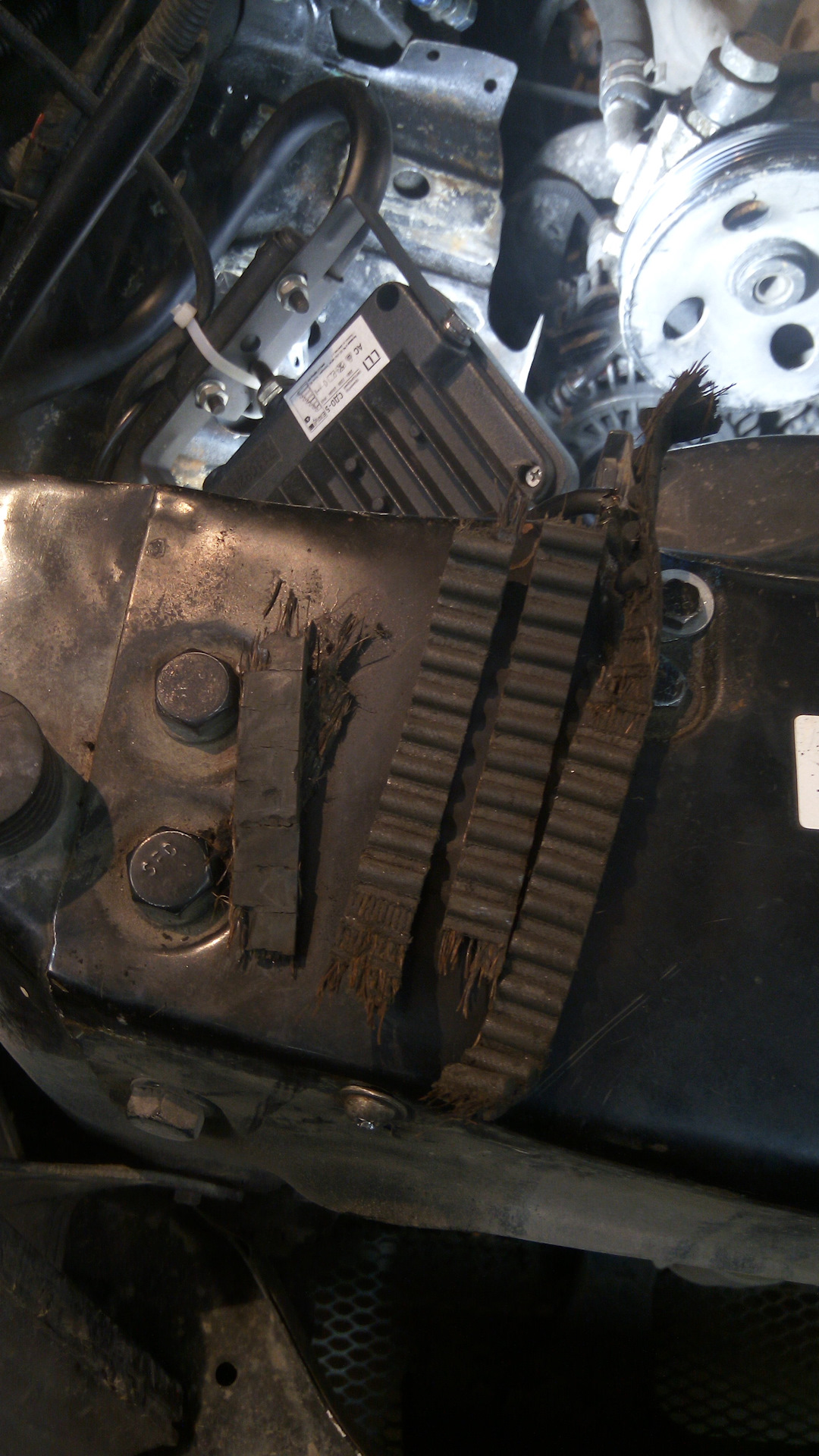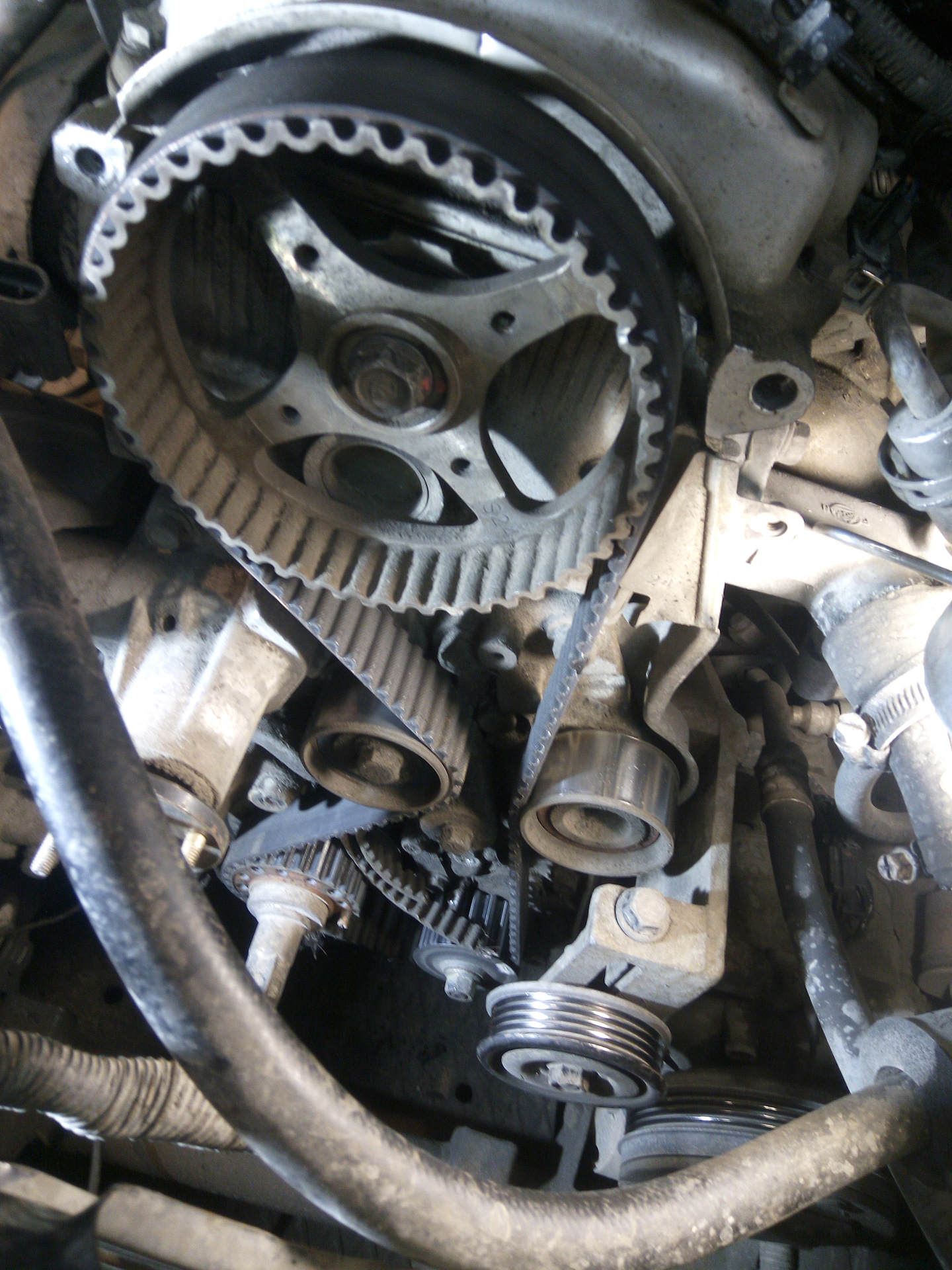Говорить много не чего. перестала ехать… на следующий день вообще встала. Были заменены свечи, провода, катушка и все без результатно. В итоге после 30км на "галстуке", при разборе выяснилось что ГРМ перескачил аж на 6 зубов, виновник был найден, это оказался ремень балансировочного вала который наверное был еще родной с завода, изорвался весь в клочья, попал под ГРМ и произошел перескок. Ну главное что клапана остались живы, В процессе ремонта были заменены все ремни (5шт). Едем дальше)